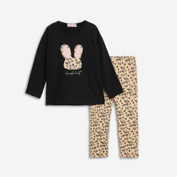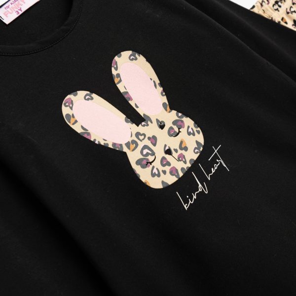 Μπλουζοφόρεμα με κολάν φούτερ λύκρα για κορίτσι 2-6 ετών σε χρώμα μαύρο/ μπεζ allover (animal print)