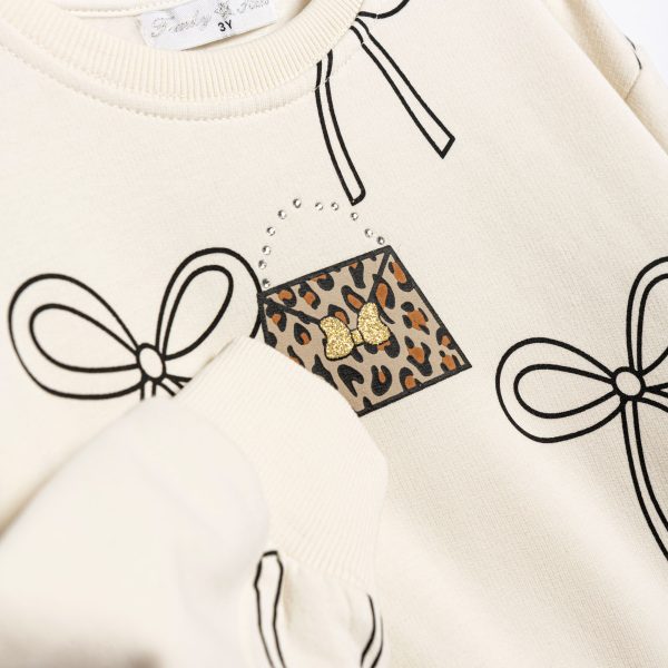 Μπλουζοφόρεμα με κολάν φούτερ λύκρα για 2-6 ετών σε χρώμα ερκού allover ( φιογκάκια) / μαύρο