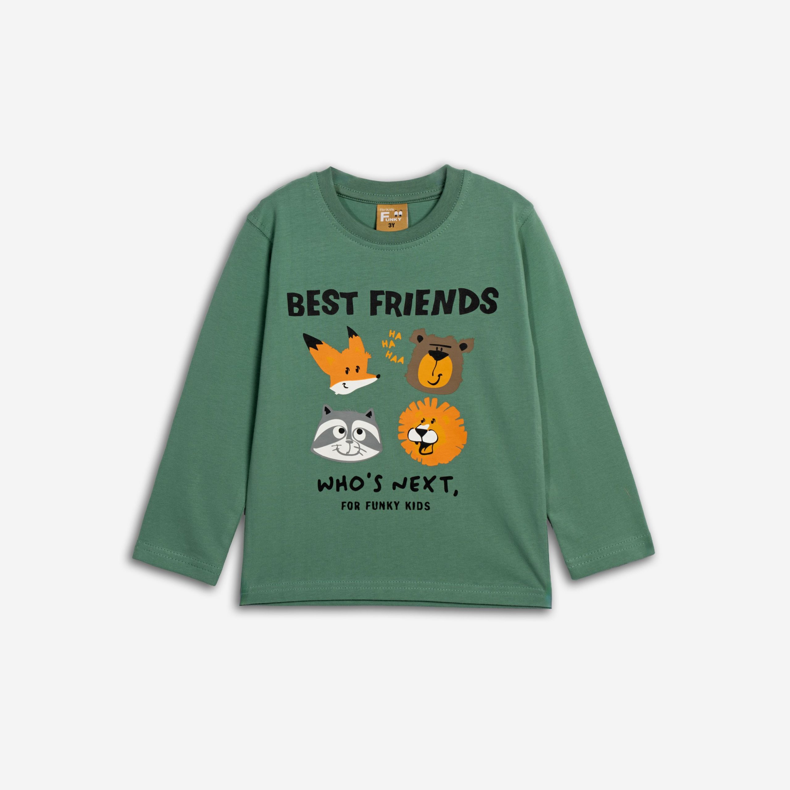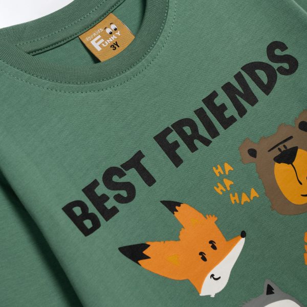 Mπλούζα κάλτσα για αγόρι 2-6 ετών σε χρώμα deep grasss με τύπωμα (ζωάκια)
