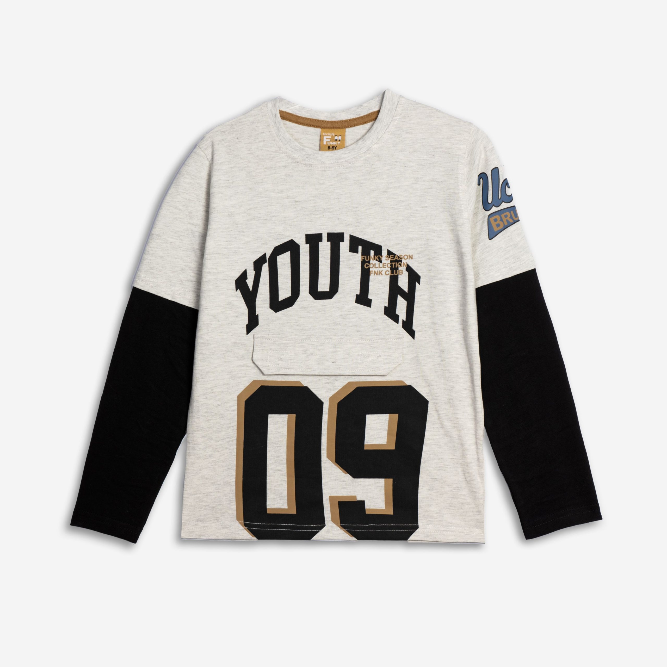 Μπλούζα κάλτσα σε χρώμα εκρού μελανζέ -μαύρο για 6-16 χρονών αγόρι