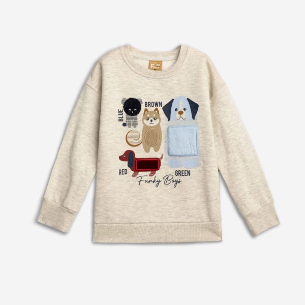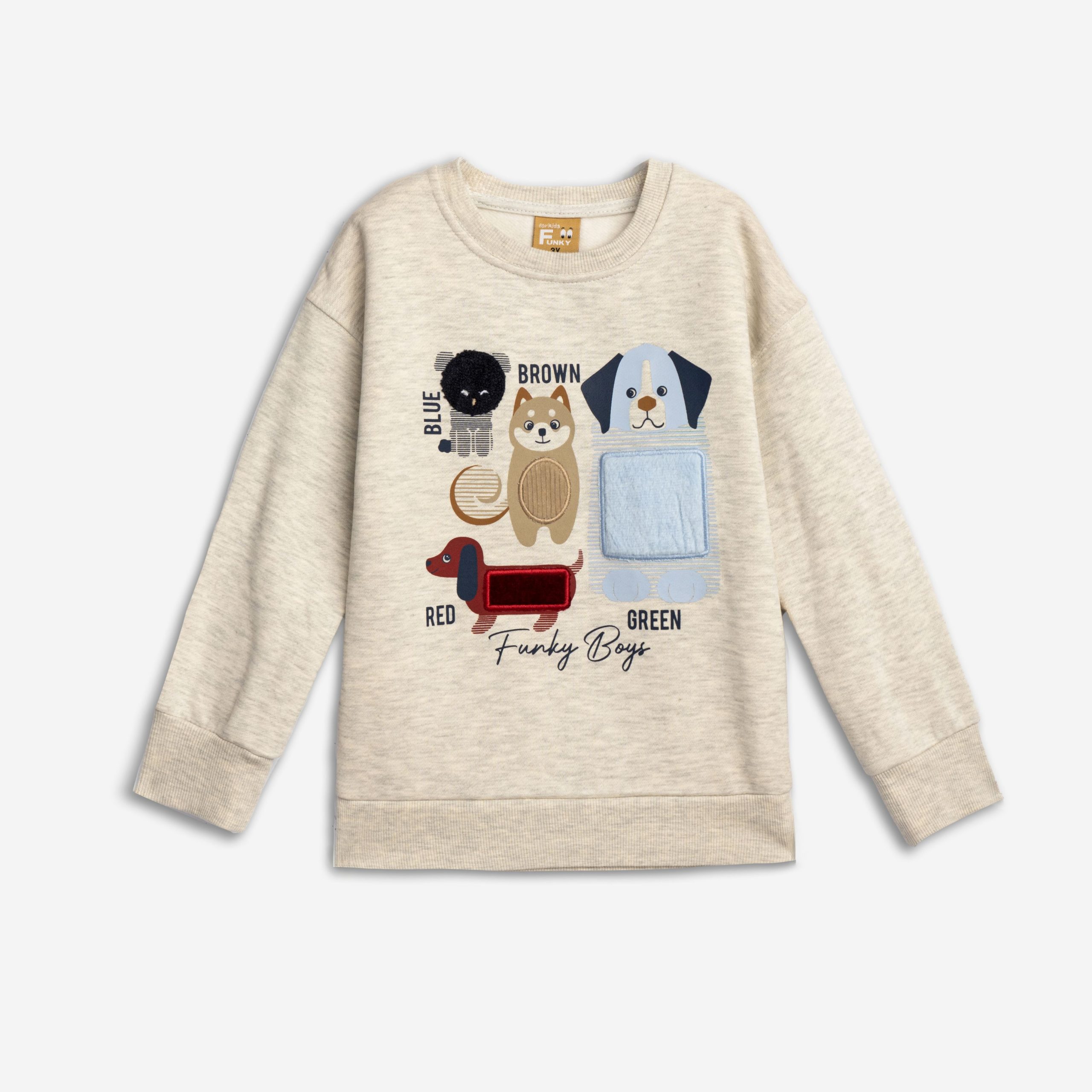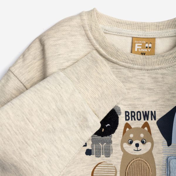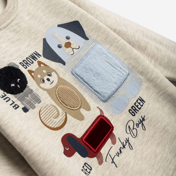 Μπλουζα φούτερ για αγόρι 2-6 ετών σε χρώμα εκρού μελανζέ με τύπωμα (αρκουδάκι)