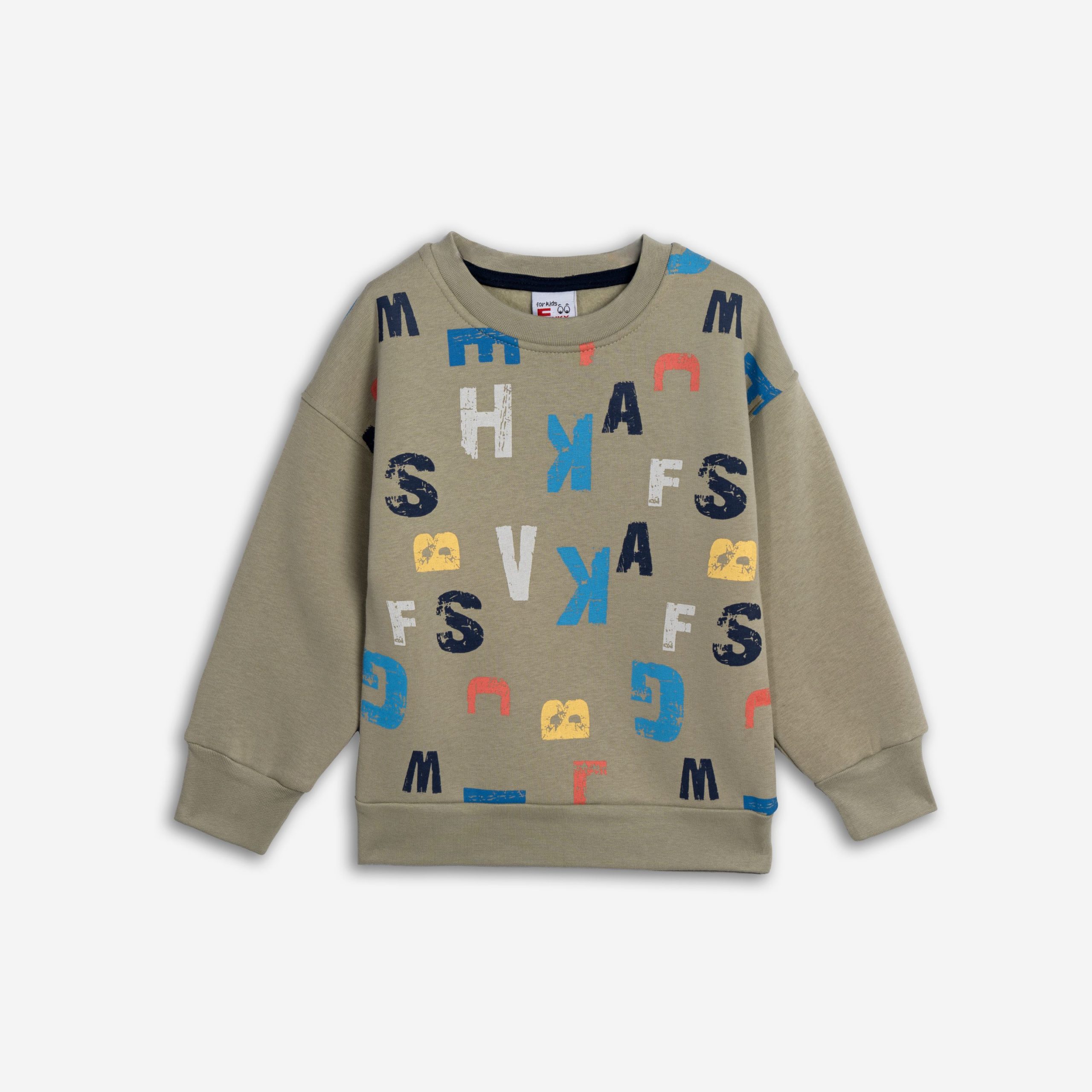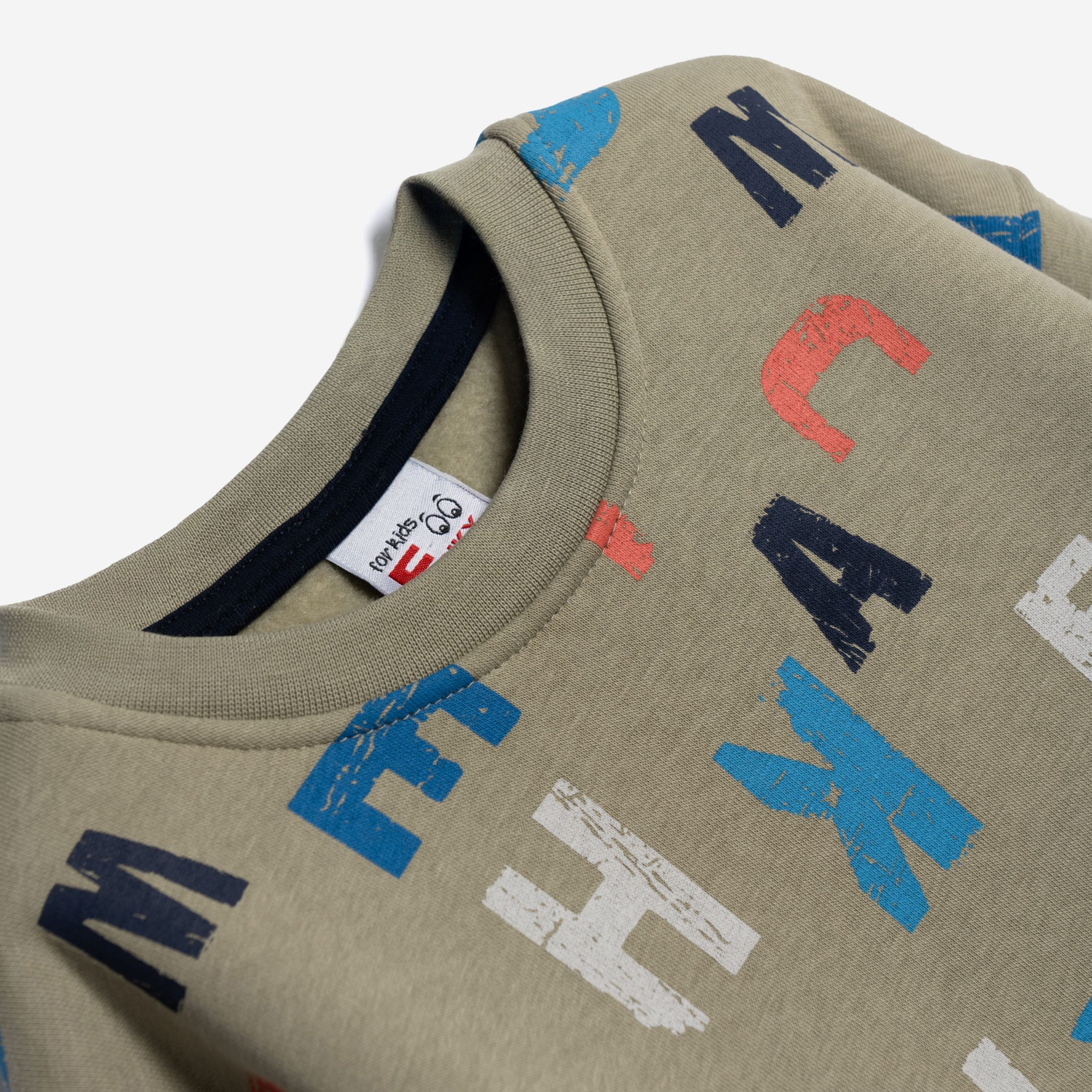 Μπλουζα φούτερ για αγόρι 2-6 ετών σε χρώμα ευκάλυπτος allover ( με γράμματα)