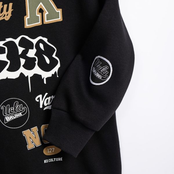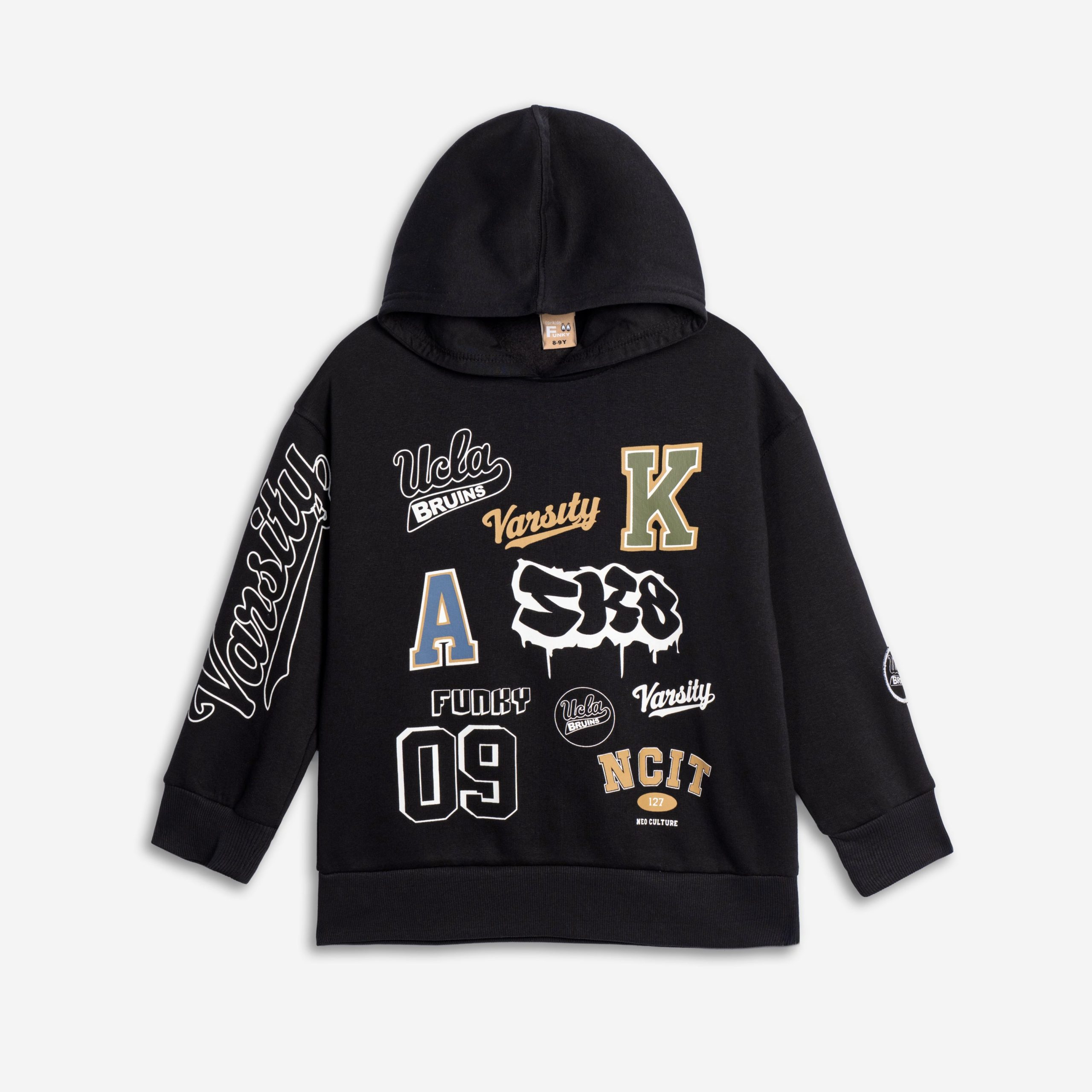 Μπλούζα φούτερ με κουκούλα και τύπωμα allover για αγόρι 6-16 χρονών σε χρώμα μαύρο