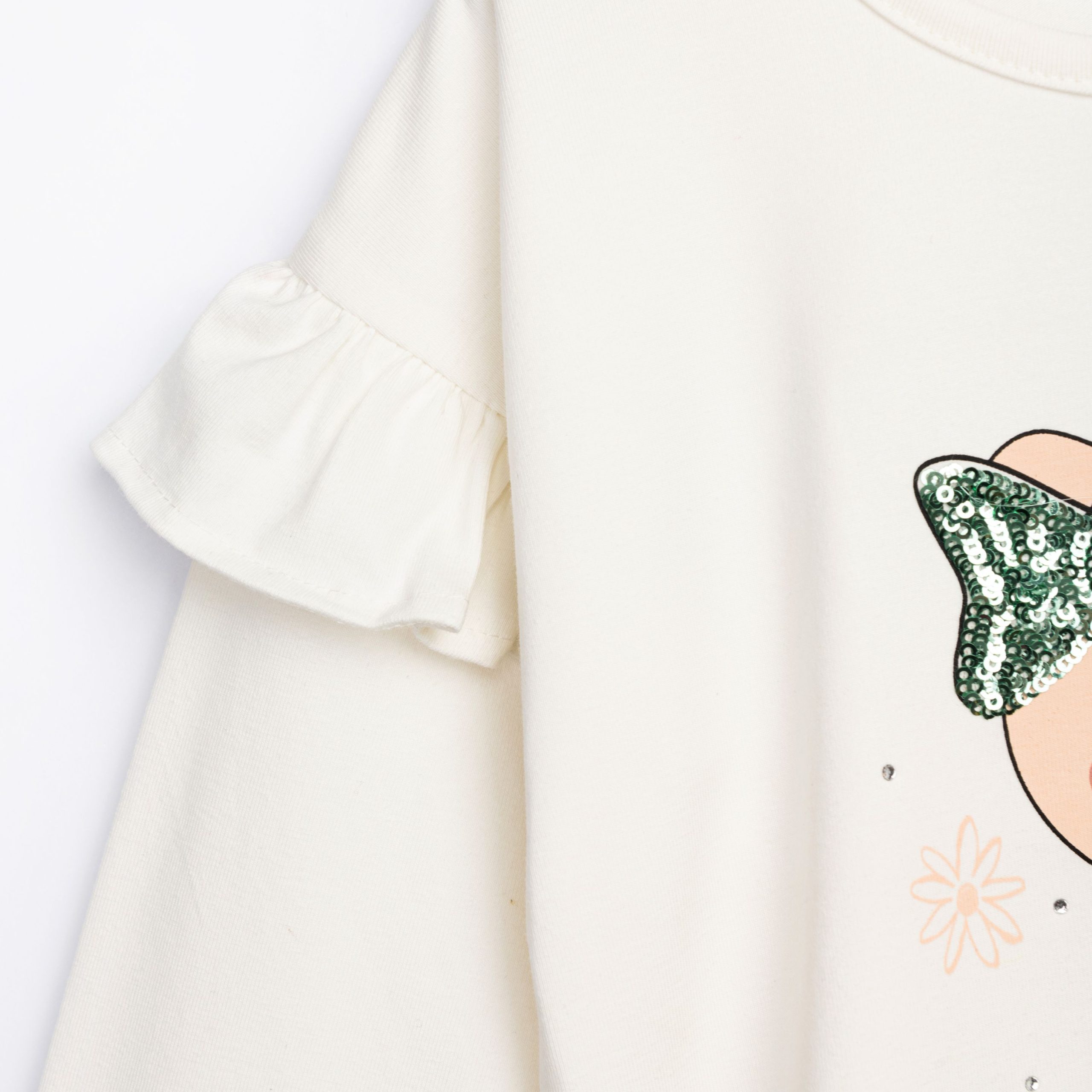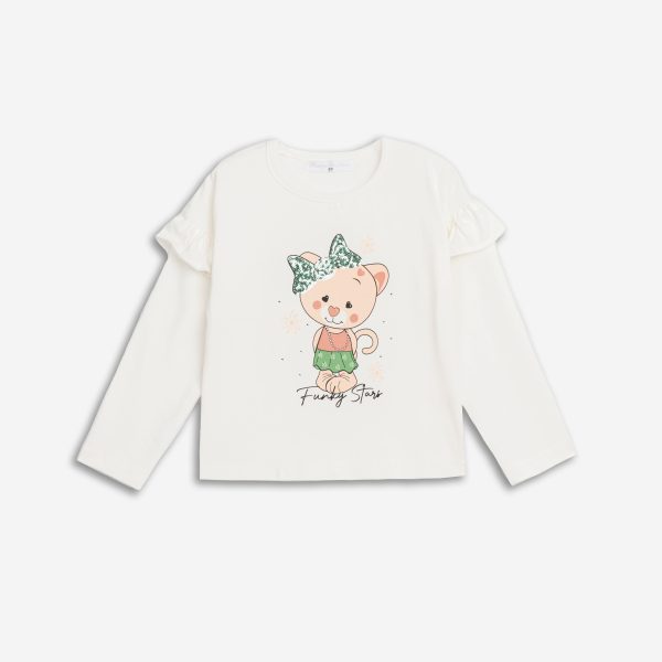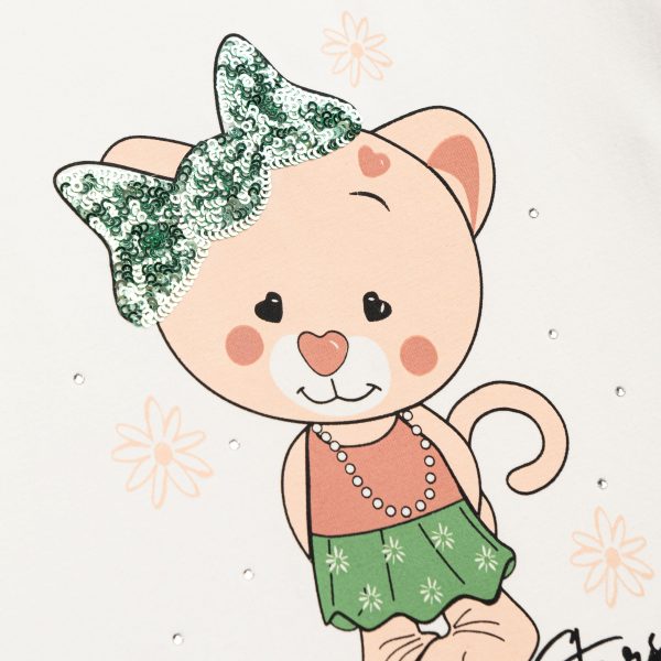 Μπλούζα κάλτσα λύκρα για κορίτσι 2-6 ετών σε χρώμα εκρού με τύπωμα (γατάκι)