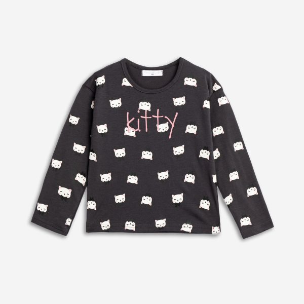 Μπλούζα κάλτσα λύκρα για κορίτσι 2-6 ετών σε χρώμ ανθρακί allover ( γατάκια)