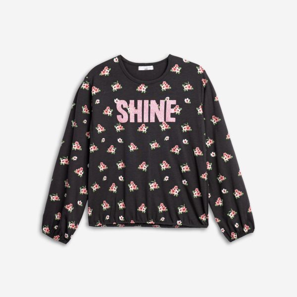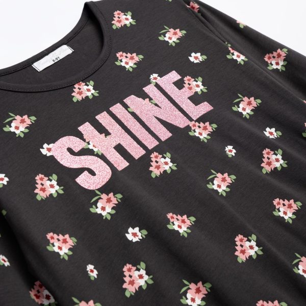 Μπλούζα κάλτσα λύκρα με τύπωμα(SHINE) allover για κορίτσι 6-16 χρονών σε χρώμα ανθρακί allover