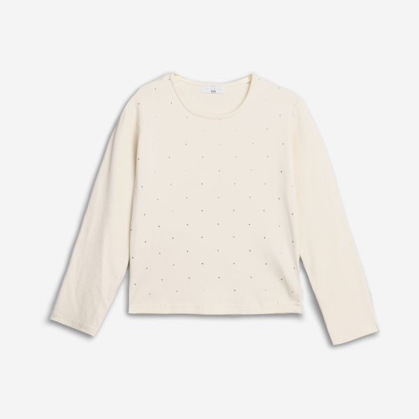 Μπλούζα ριπ με στρας για κορίτσι 6-16 χρονών σε χρώμα εκρού