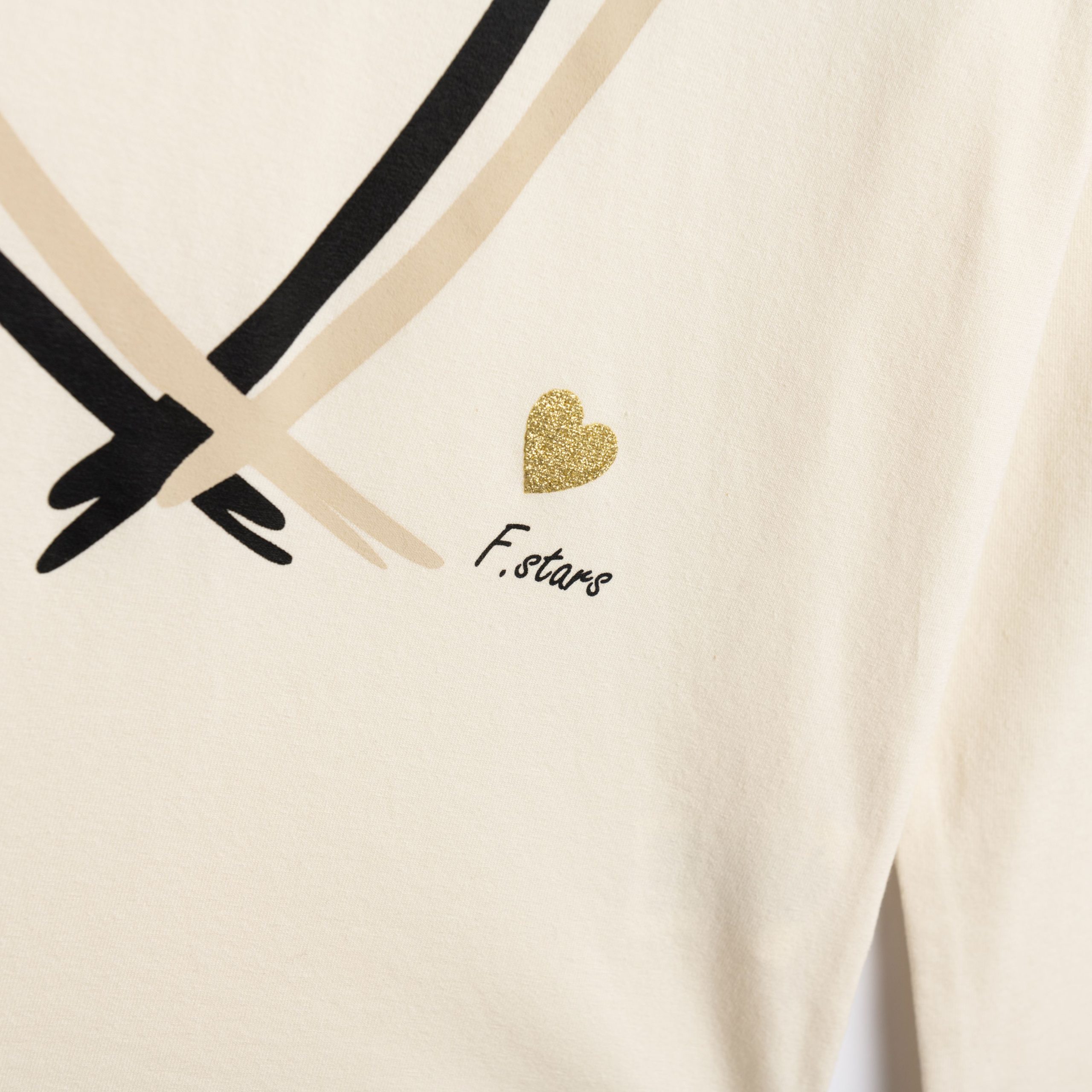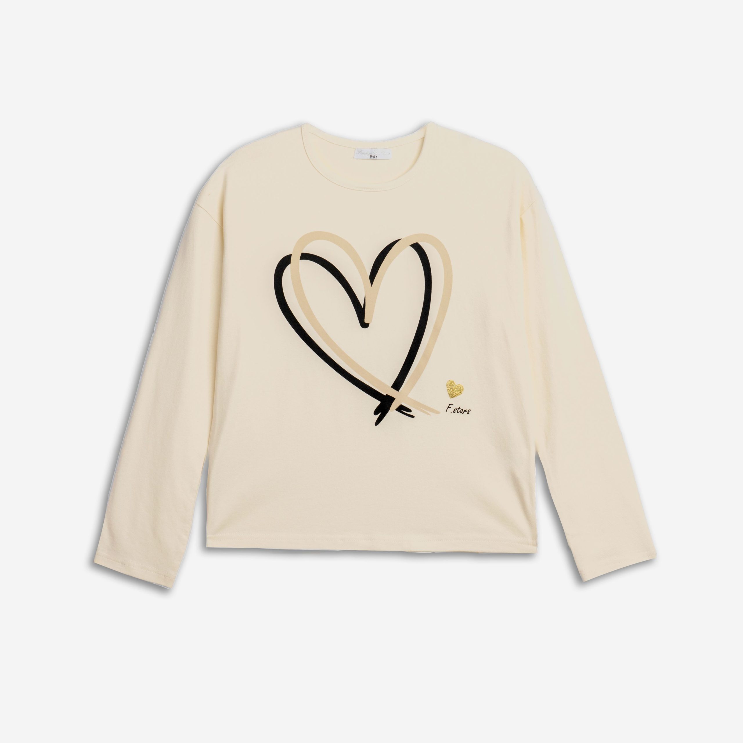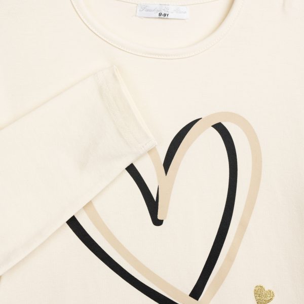Μπλούζα κάλτσα λύκρα με τύπωμα (καρδιά)για κορίτσι 6-16 χρονών σε χρώμα εκρού