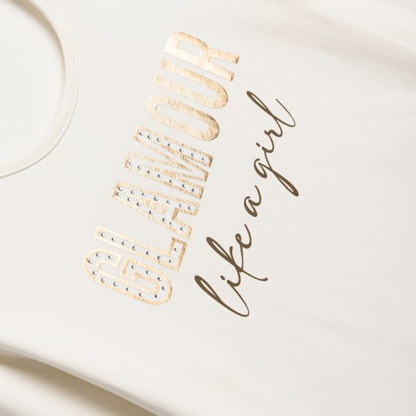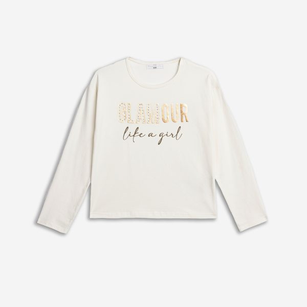 Μπλούζα κάλτσα λύκρα με τύπωμα (glamour) για κορίτσι 6-16 χρονών σε χρώμα εκρού