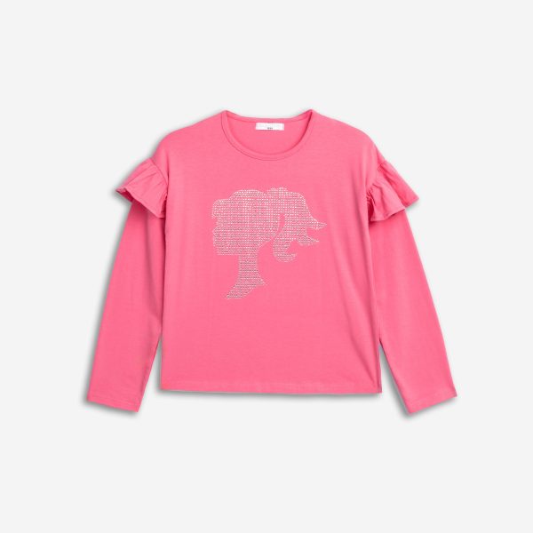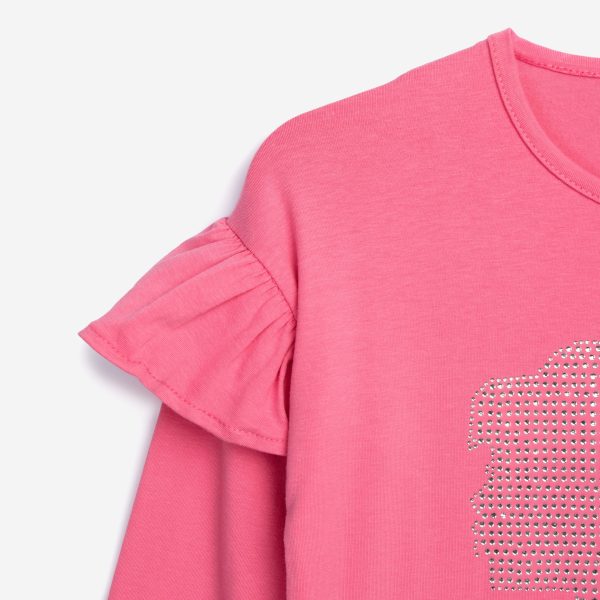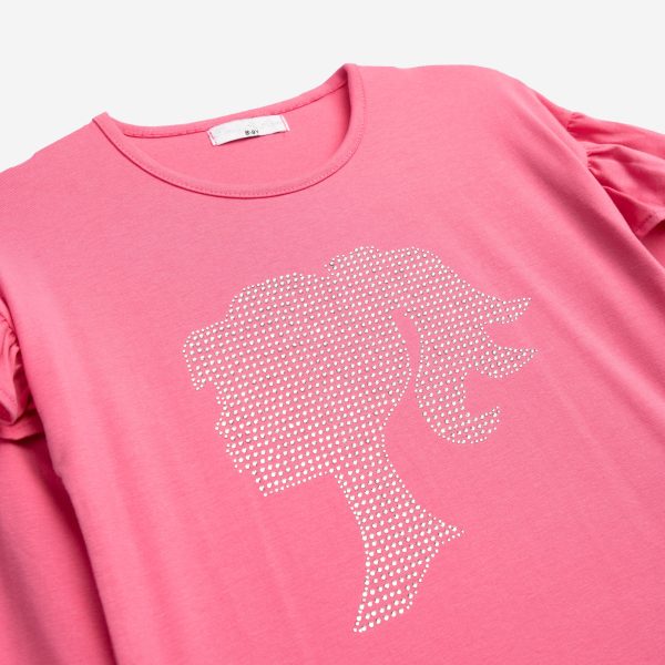 Μπλούζα κάλτσα λύκρα με τύπωμα και τούλι μαλακό στα μανίκια για κορίτσι 6-16 χρονών σε χρώμα κονφετί