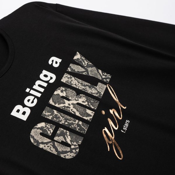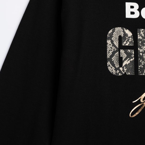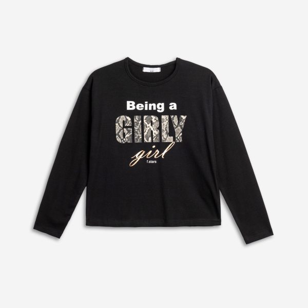 Μπλούζα κάλτσα λύκρα με τύπωμα για κορίτσι 6-16 χρονών σε χρώμα μαύρο
