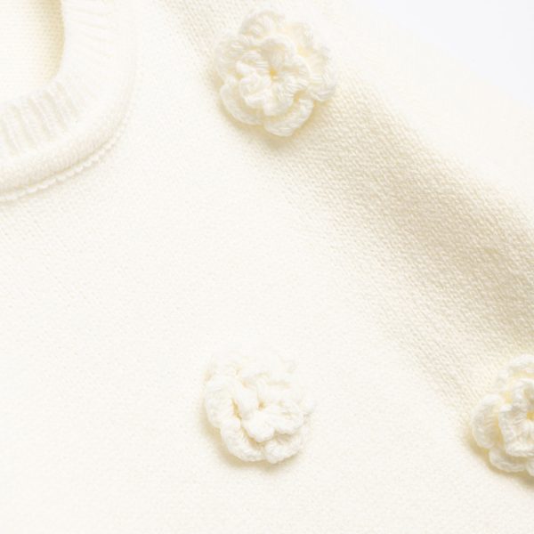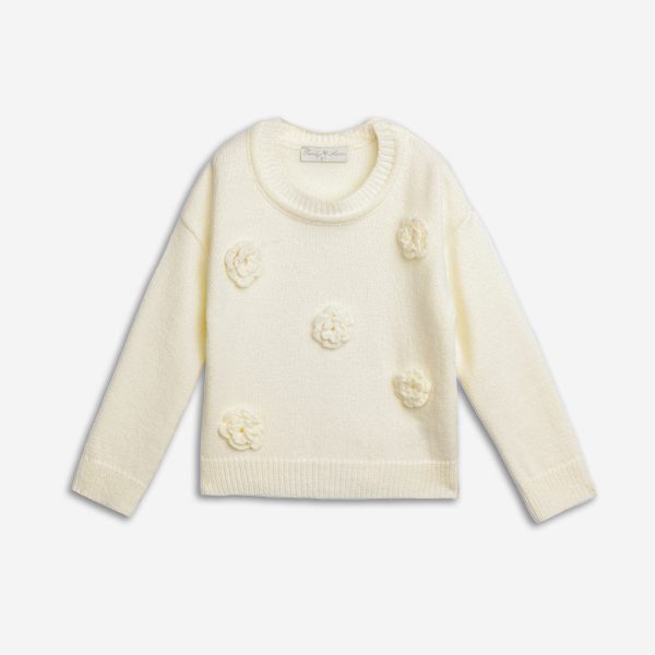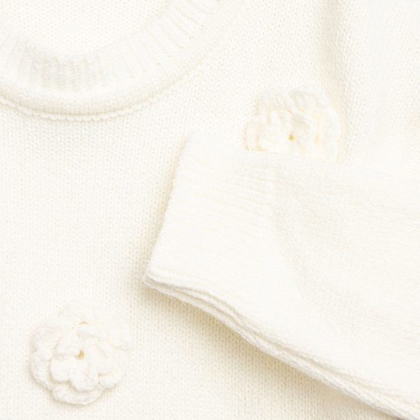 Μπλούζα πλεκτή για κορίτσι 2-6 ετών σε χρώμα εκρού με λουλουδάκια πλεκτά εκρού