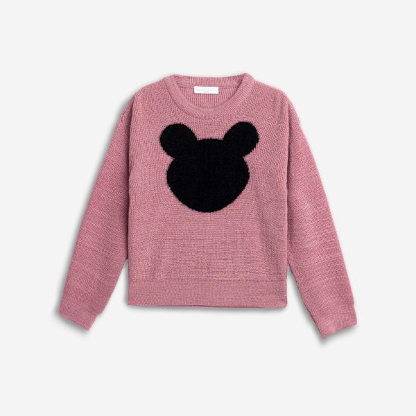 Μπλούζα πλεκτή με τύπωμα αρκουδάκι για κορίτσι 6-16 χρονών σε χρώμα καμέλια