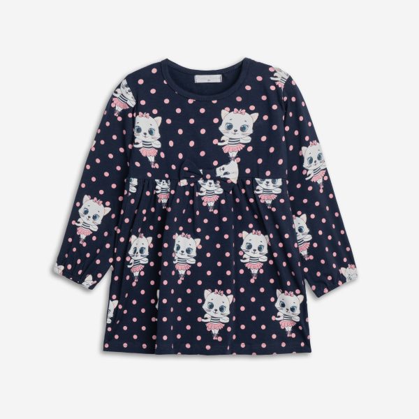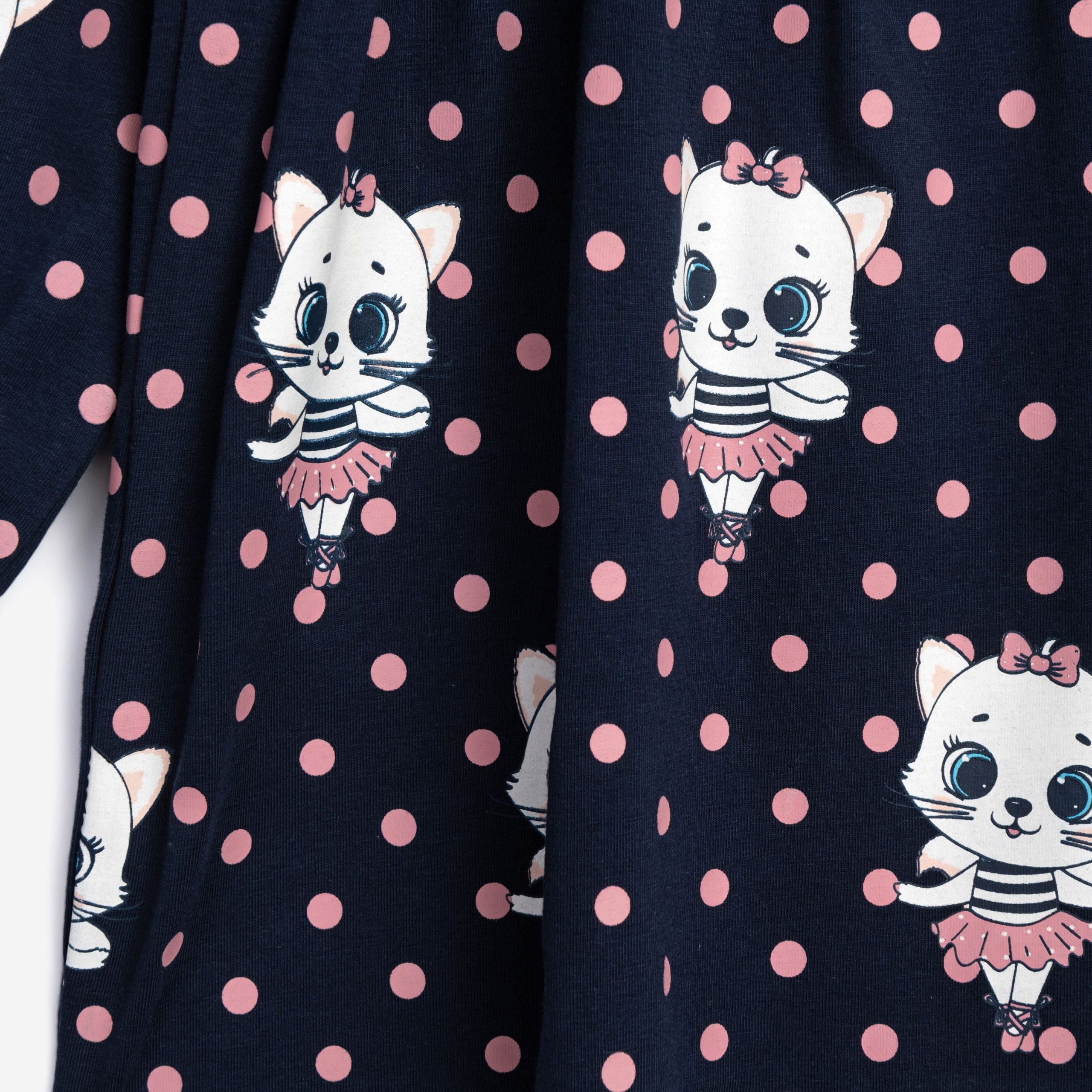 Φόρεμα κάλτσα λύκρα για κορίτσι 2-6 ετών σε χρώμα μπλε allover (γατούλες)