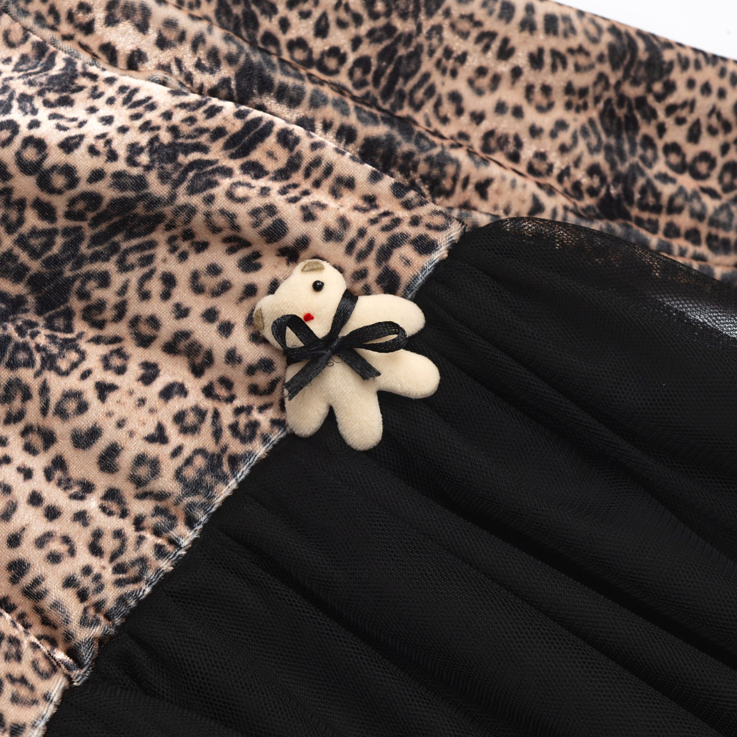 Φόρεμα βελουτέ με τούλι για κορίτσι 2-6 ετών σε χρώμα λεοπάρ/ μαύρο με λεπτομέρεια με αρκουδάκι