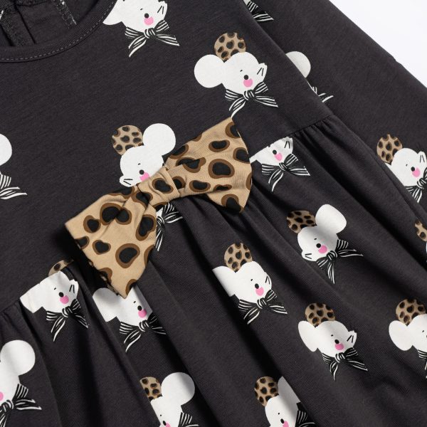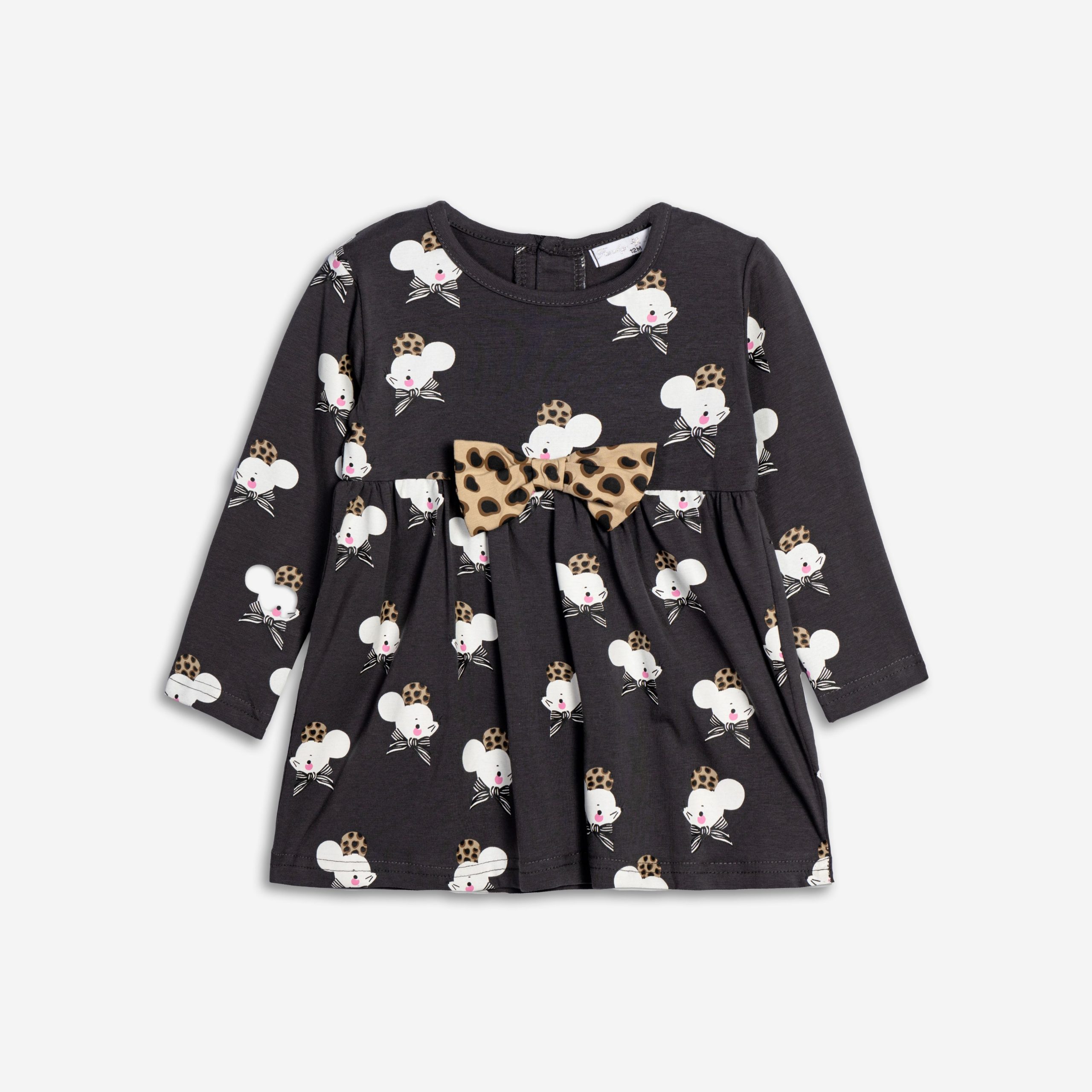 Φόρεμα για κορίτσι 6-24 μηνών σε χρώμα ανθρακί allover και φιόγκο στη μέση