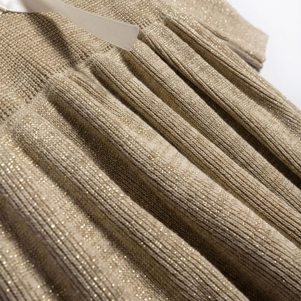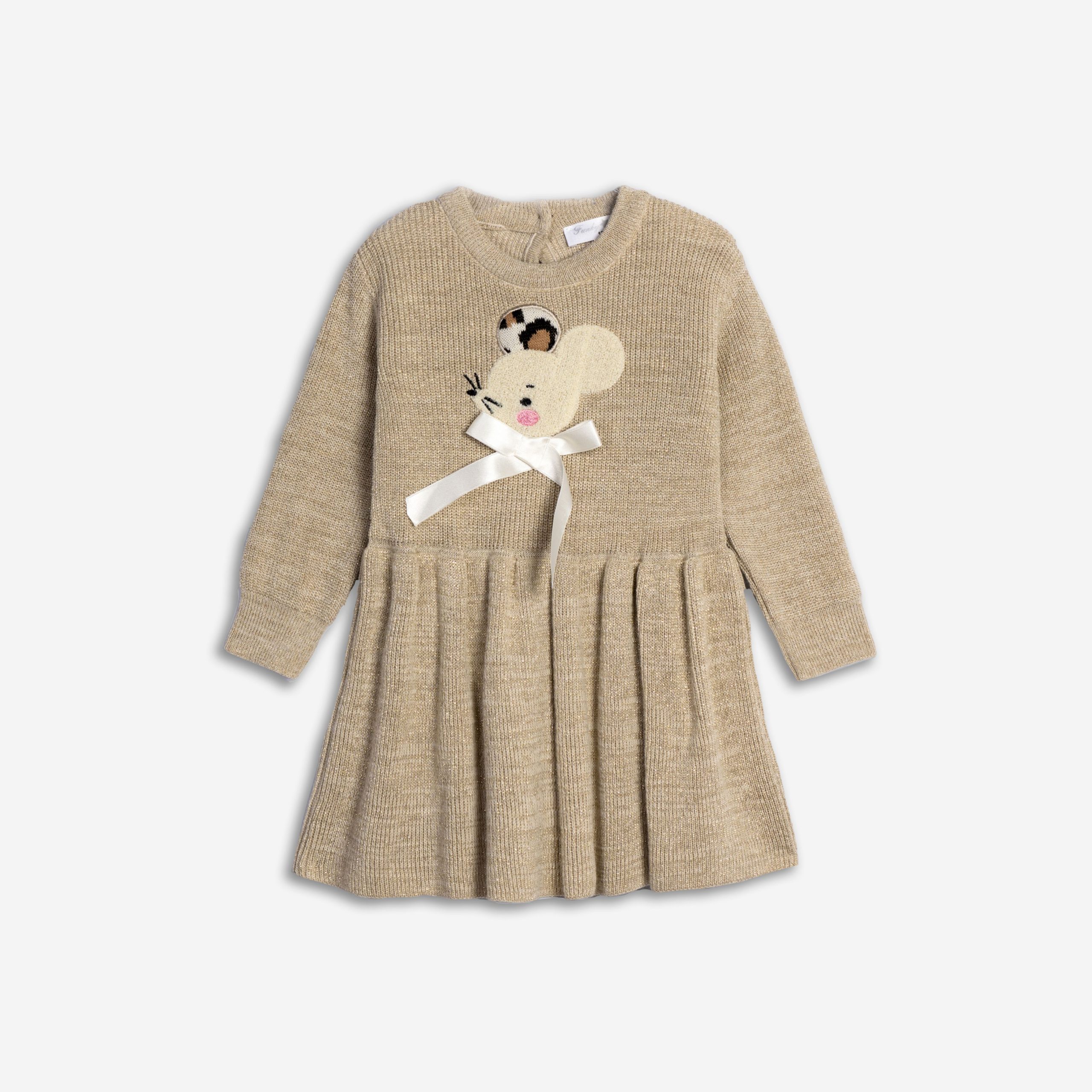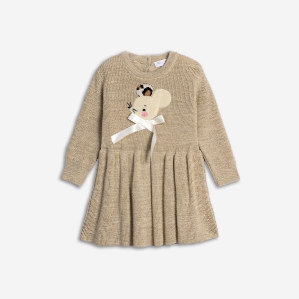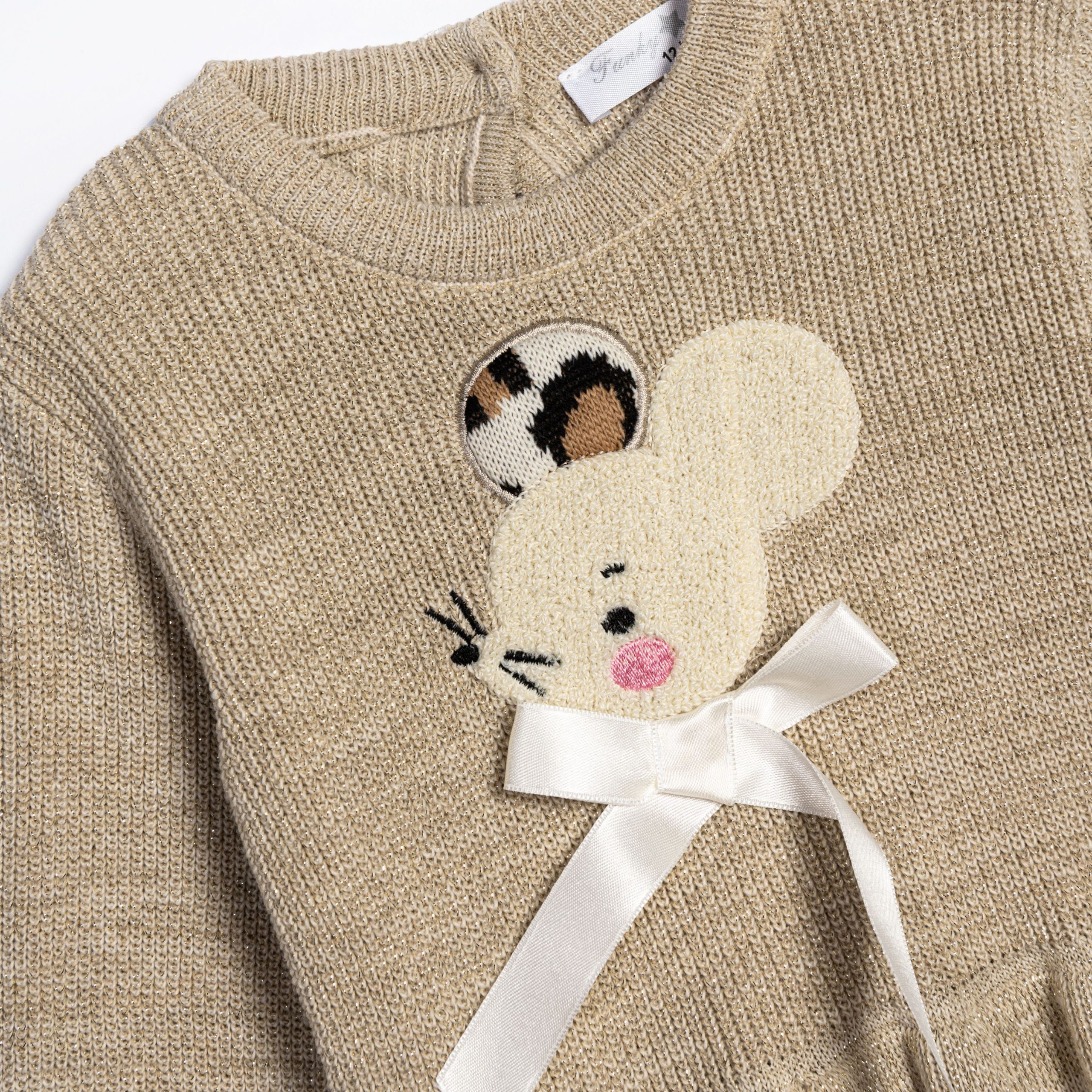 Φόρεμα πλεκτό με τύπωμα ποντικάκι για κορίτσι 6-24 μηνών σε χρώμα μπεζ-χρυσό λούρεξ