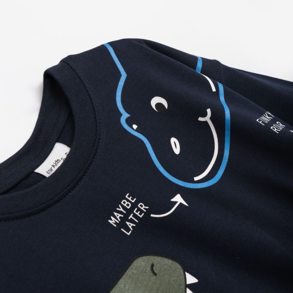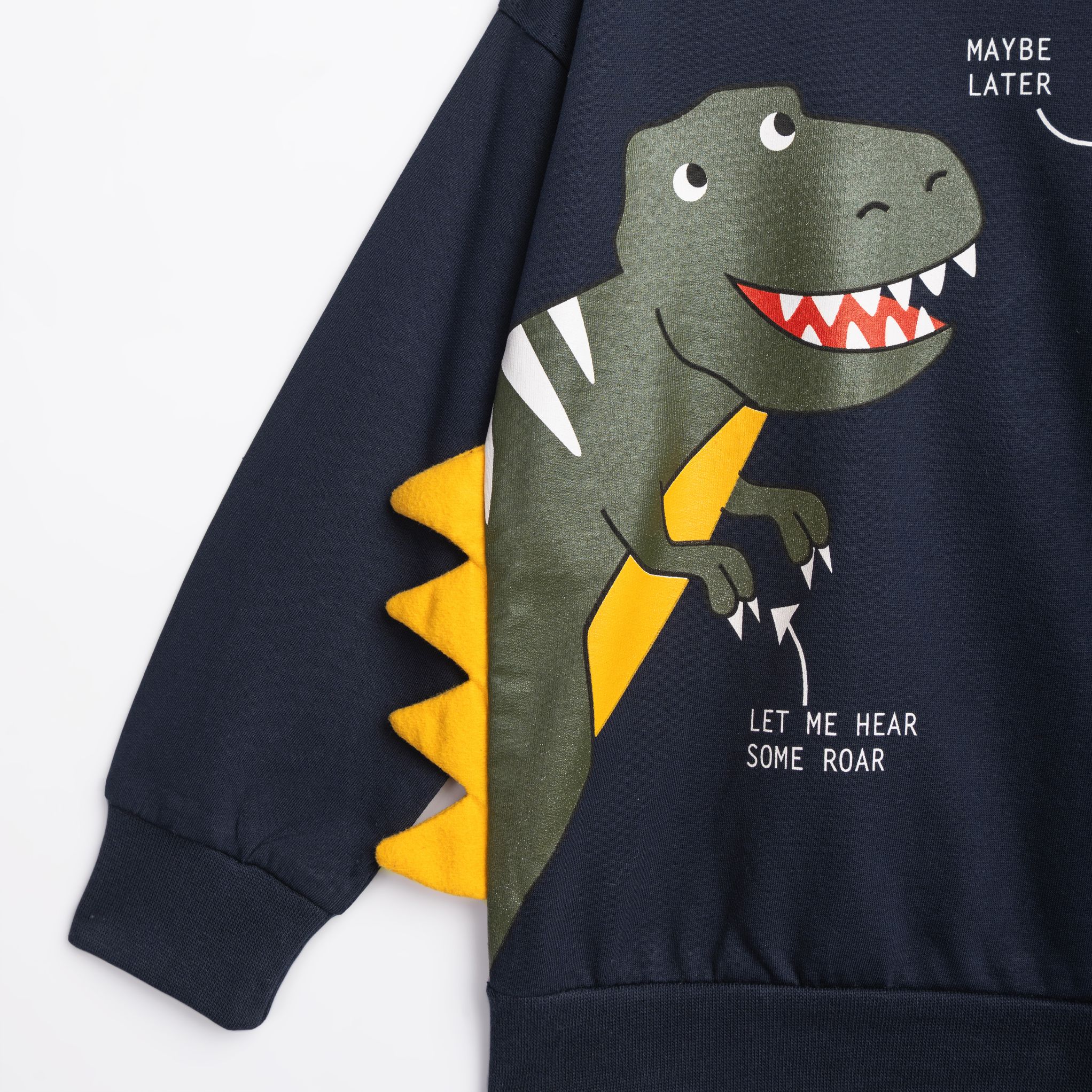 Φόρμα φούτερ αχνούδιαστη για αγόρι 2-6 ετών σε χρώμα μπλε/ χακί με τύπωμα στην μπλούζα ( δεινόσαυρους )