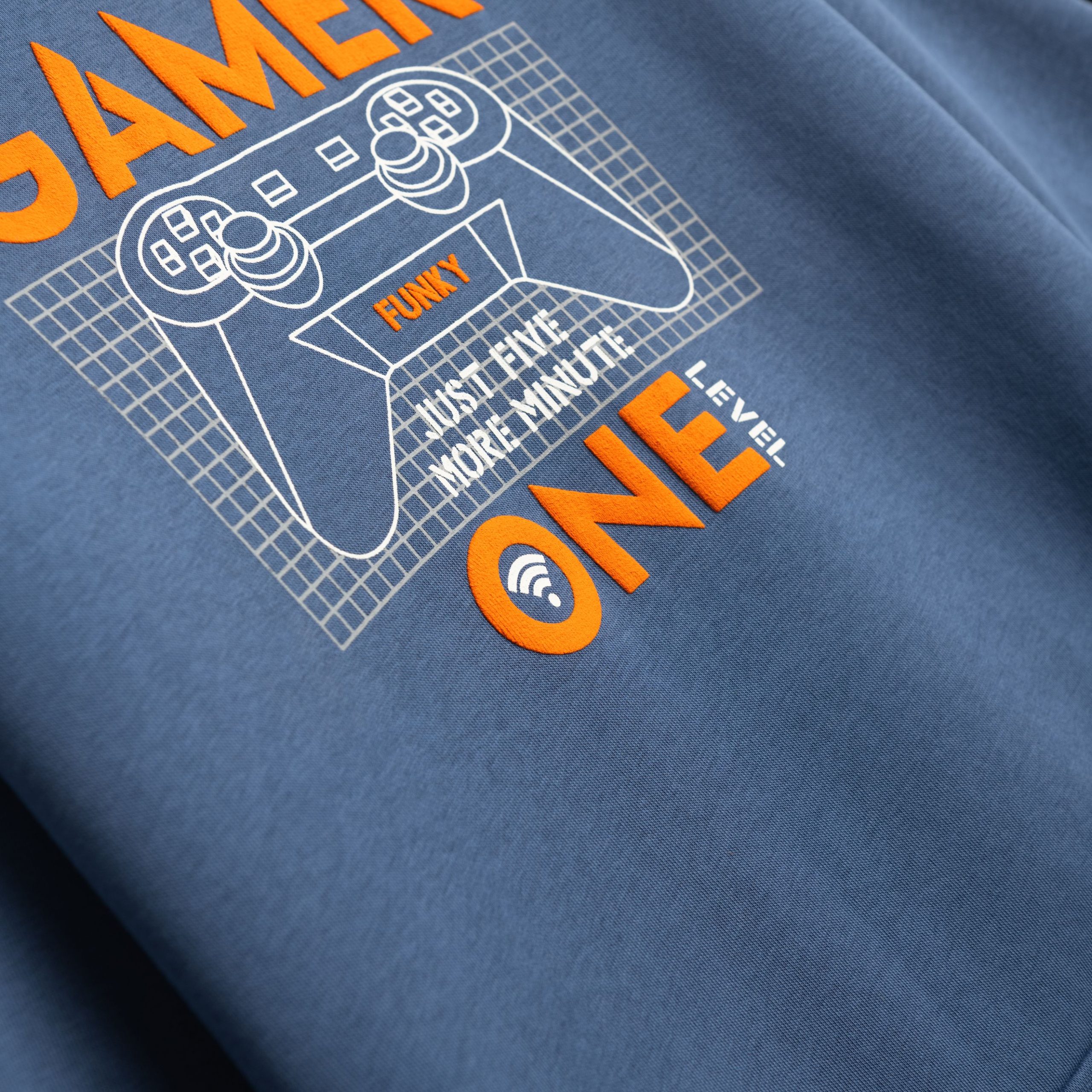 Φόρμα φούτερ με τύπωμα(gamer) για αγόρι 6-16 χρονών σε χρώμα ραφ/μαύρο