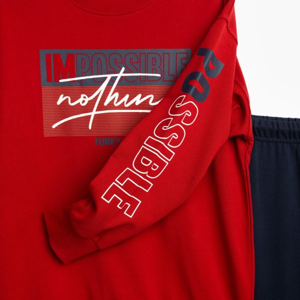 Φόρμα φούτερ αχνούδιαστο με τύπωμα για αγόρι 6-16 χρονών σε χρώμα κόκκινο/μπλε