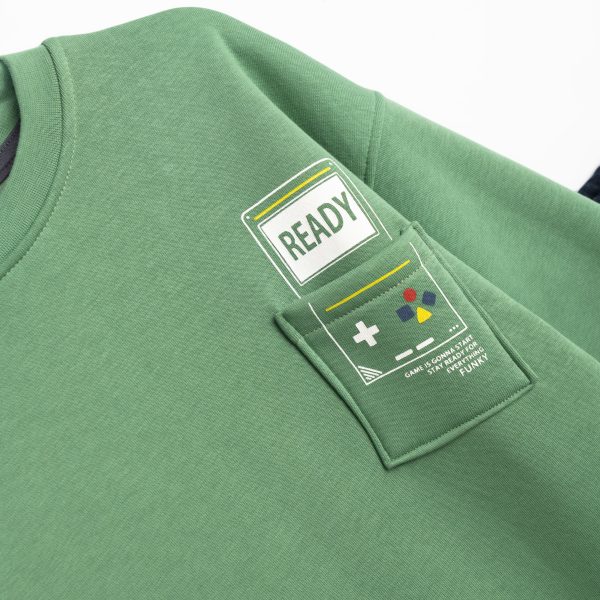 Φορμά φούτερ με τύπωμα στην μπλούζα και στο παντελόνι για αγόρι 6-16 χρονών σε χρώμα grass/ανθρακί