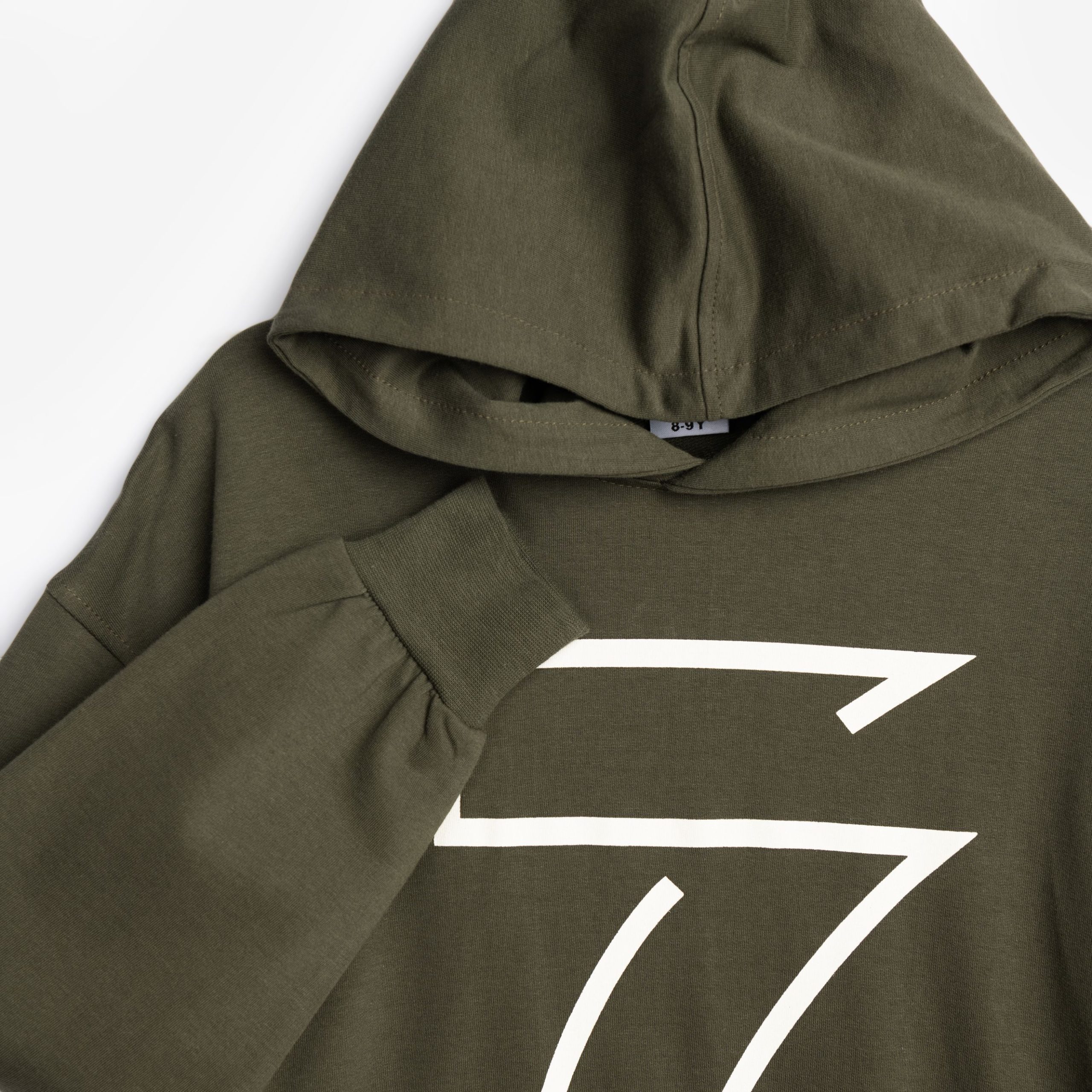 Φόρμα φούτερ αχνούδιαστο με κουκούλα και τύπωμα για αγόρι 6-16 χρονών σε χρώμα χακί/μπλε