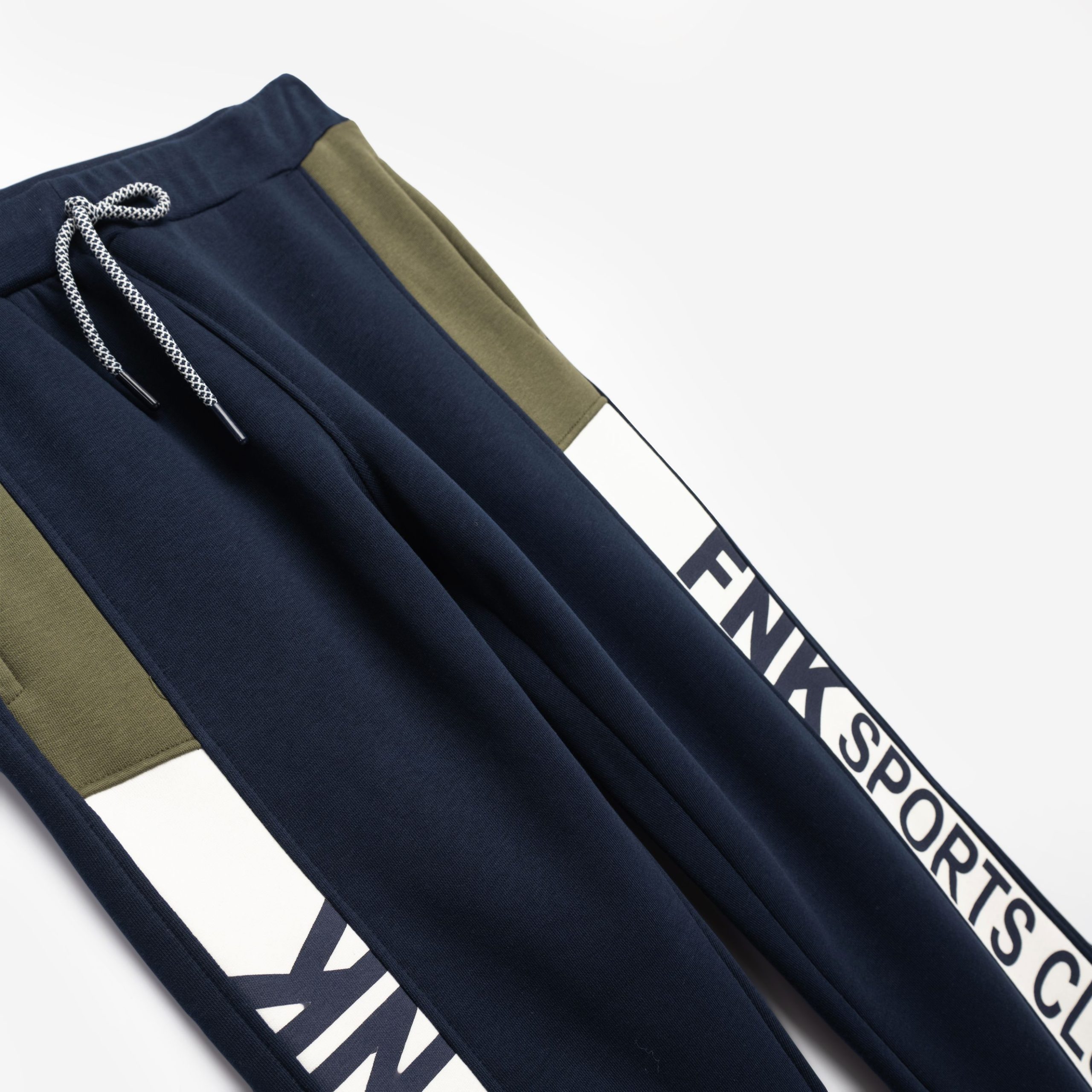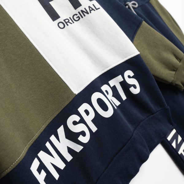 Φόρμα φούτερ με κουκούλα, με τύπωμα στην μπλούζα και στο παντελόνι για αγόρι 6-16 χρονών σε χρώμα χακί-εκρού-μπλε/μπλε-χακί-εκρού