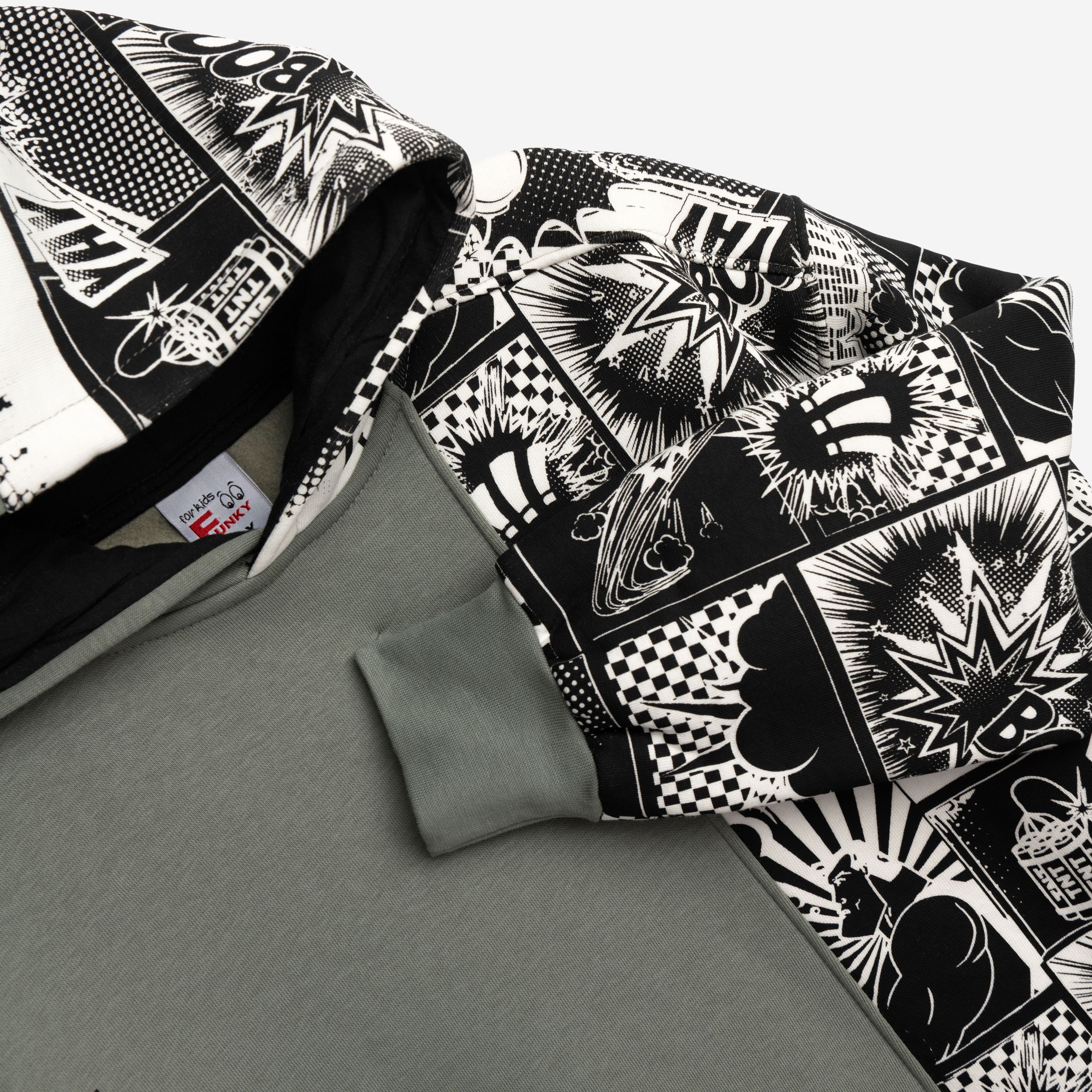 Φόρμα φούτερ με κουκούλα και τύπωμα στην μπλούζα και στο παντελόνι για αγόρι 6-16 χρονών σε χρώμα smoke/smoke