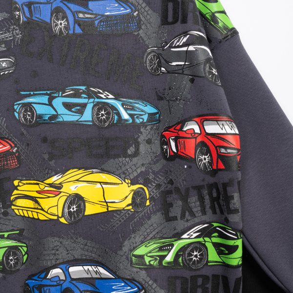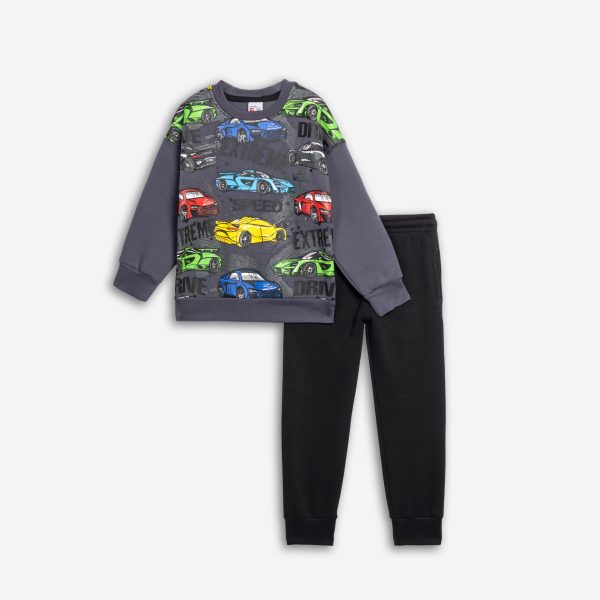 Φόρμα φούτερ για αγόρι 2-6 ετών σε χρώμα σκούρο γκρι/ μαύρο με τύπωμα( αυτοκινητάκια) στη μπλούζα