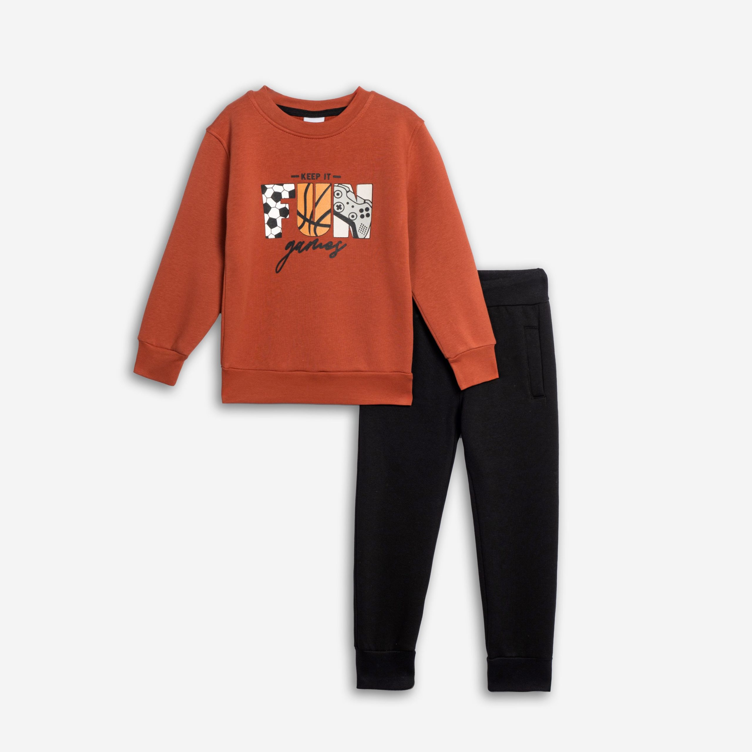 Φόρμα φούτερ για αγόρι 2-6 ετών σε χρώμα τσίλι/ μαύρο με τύπωμα ( γράμματα) στη μπλούζα