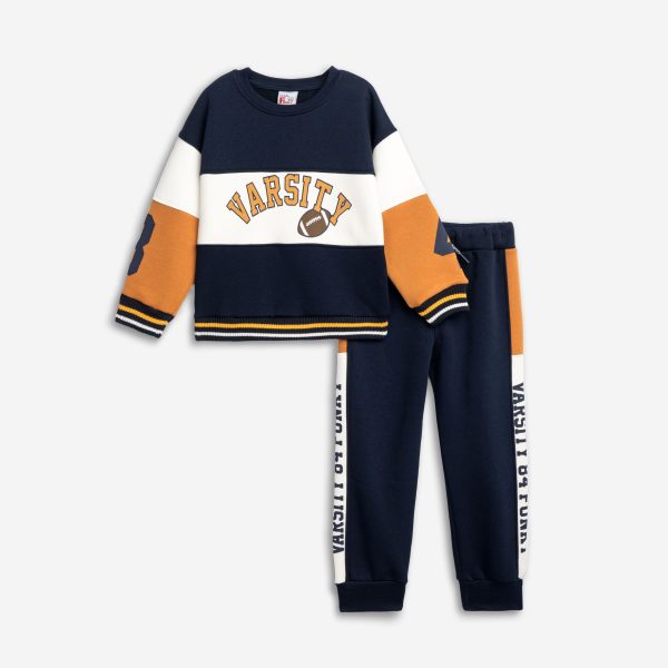 Φόρμα φούτερ για αγόρι 2-6 ετών σε χρώμα μπλε/ εκρού/ nugget και μικρό τύπωμα στην μπλούζα