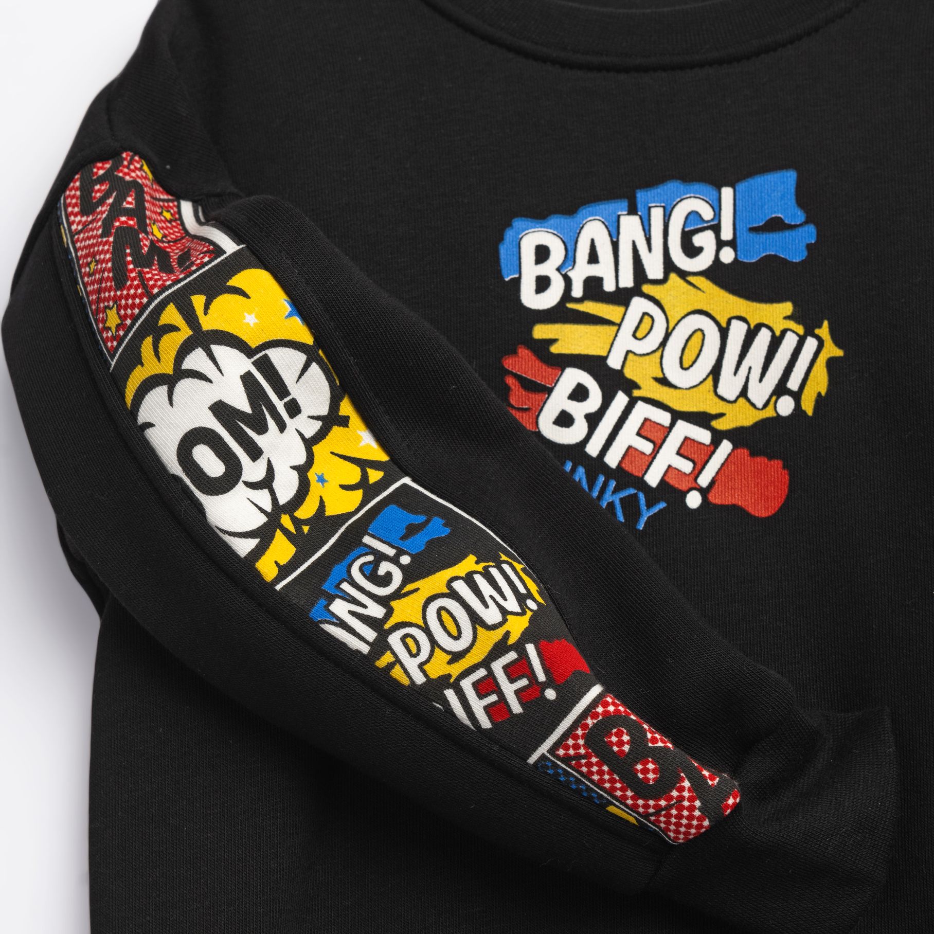 Φόρμα φούτερ για αγόρι 2-6 ετών σε χρώμα μαύρο/ μαύρο και τύπωμα στα μανίκια και στο παντελόνι.