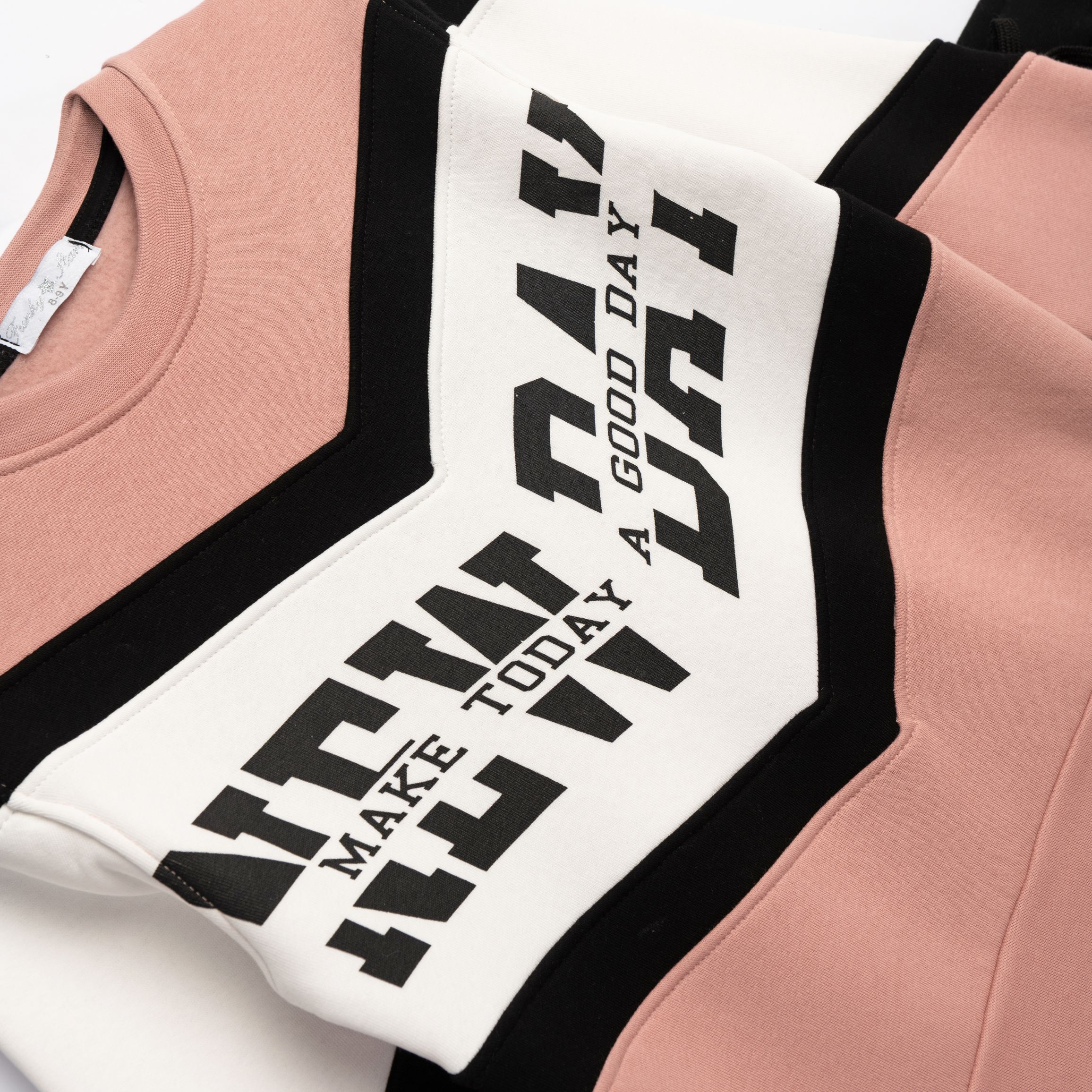 Φόρμα φούτερ με τύπωμα allover για κορίτσι 6-16 χρονών σε χρώμα powder pink-εκρού-μαύρο/μαύρο