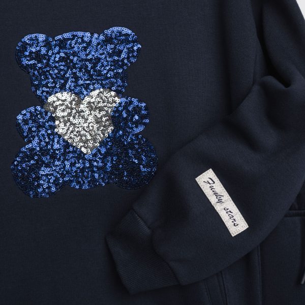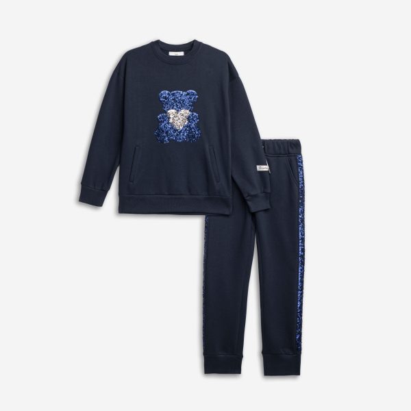 Φόρμα φούτερ με τύπωμα αρκουδάκι από παγιέτα και στο παντελόνι παγιέτα στο πλαι για κορίτσι 6-16 χρονών σε χρώμα μπλε/μπλε