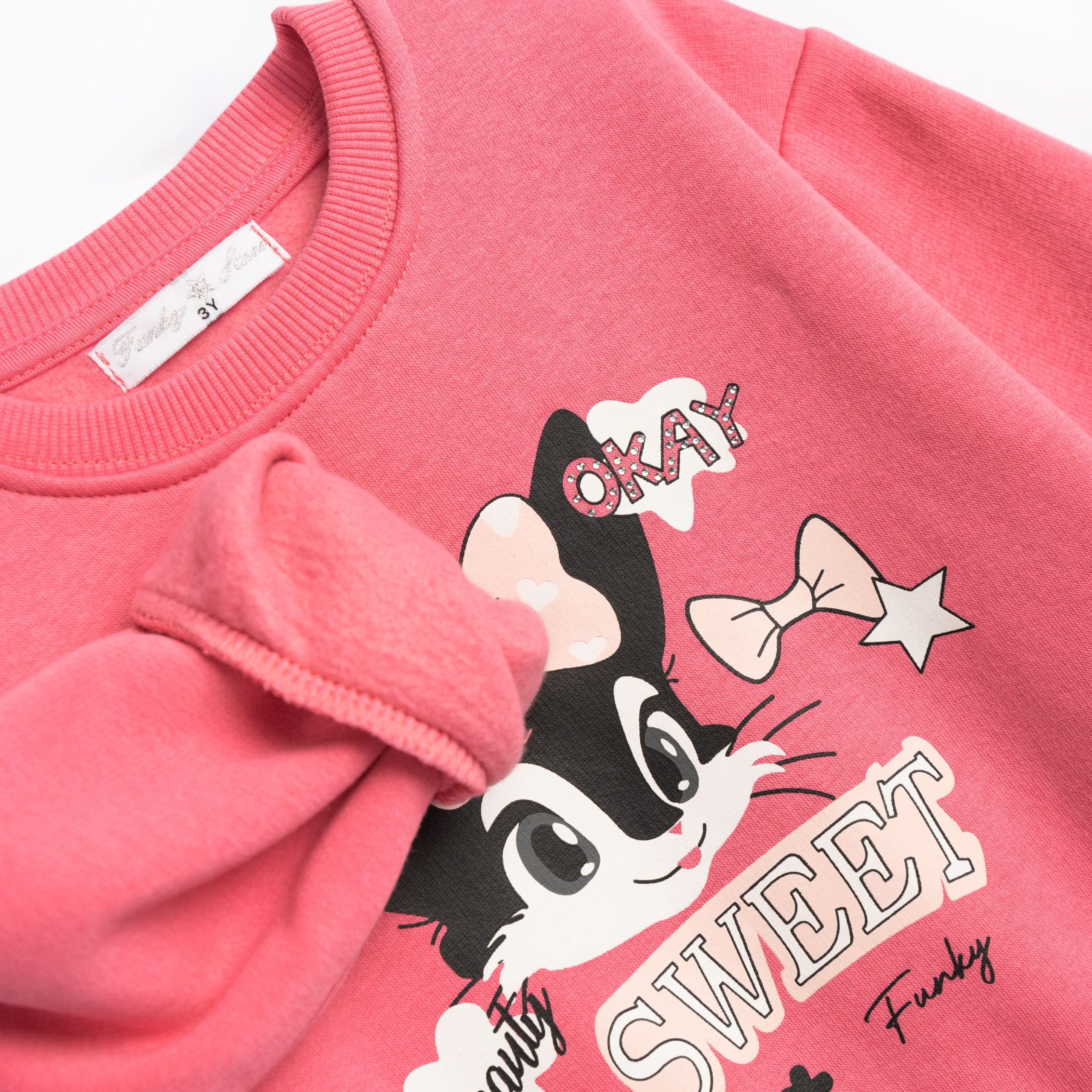 Φόρμα φούτερ για κορίτσι 2-6 ετών σε χρώμα κονφετί/ μαύρο με τύπωμα στην μπλούζα (γατούλα)