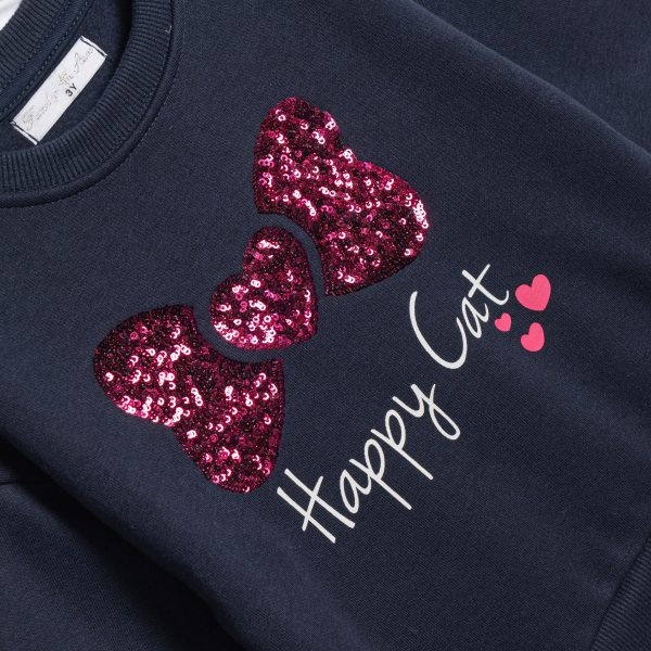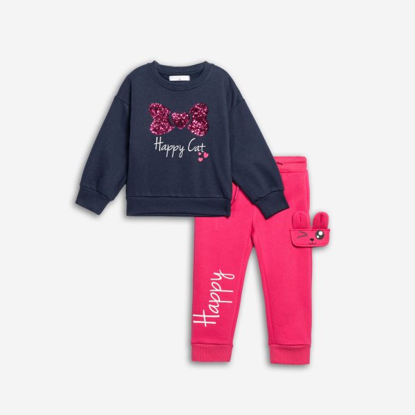 Φόρμα φούτερ για κορίτσι 2-6 ετών σε χρώμα μπλε/φουξ με τύπωμα στην μπλούζα φιογκάκι