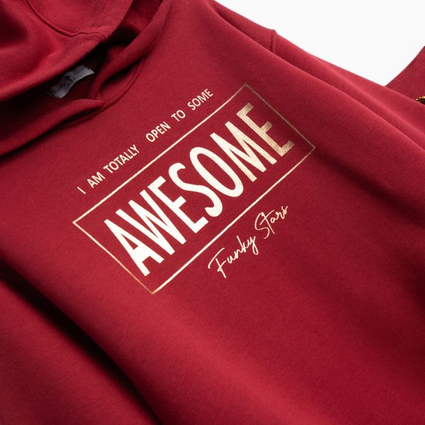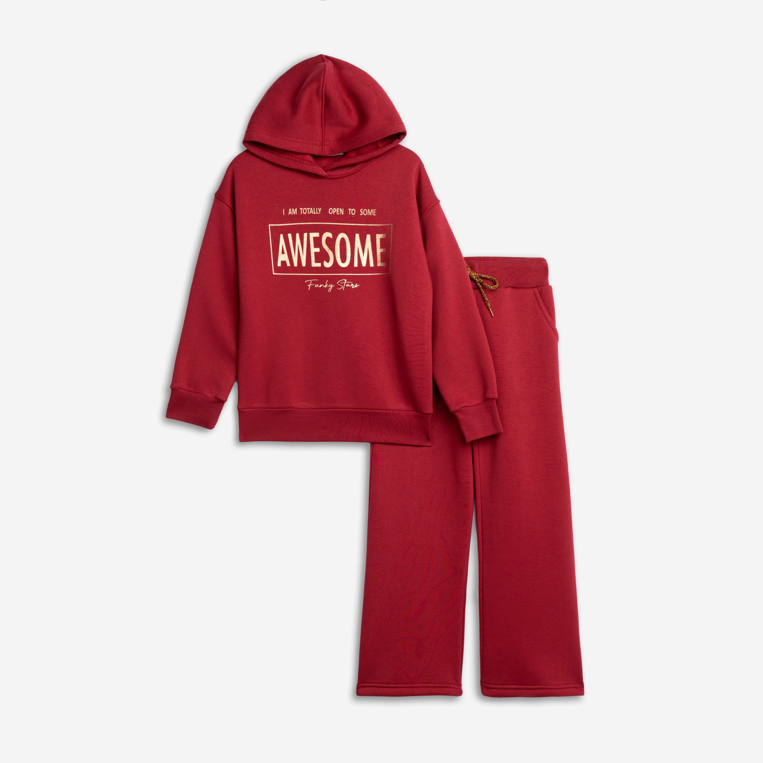 Φόρμα φούτερ με κουκούλα και τύπωμα για κορίτσι 6-16 χρονών σε χρώμα μπορντώ/μπορντώ