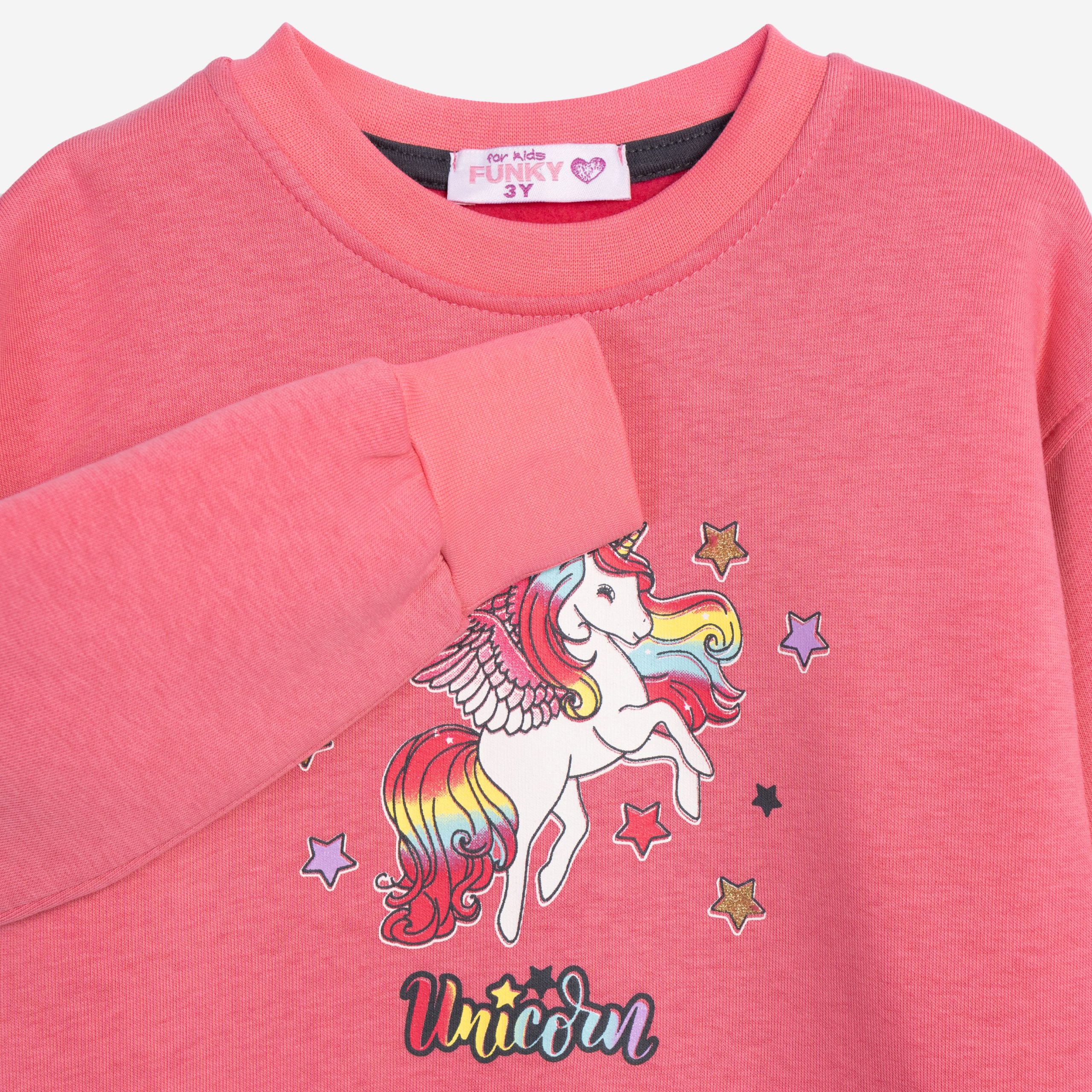 Φόρμα φούτερ για κορίτσι 2-6 ετών σε χρώμα confetti/ ανθρακί με τύπωμα ( unicorn)