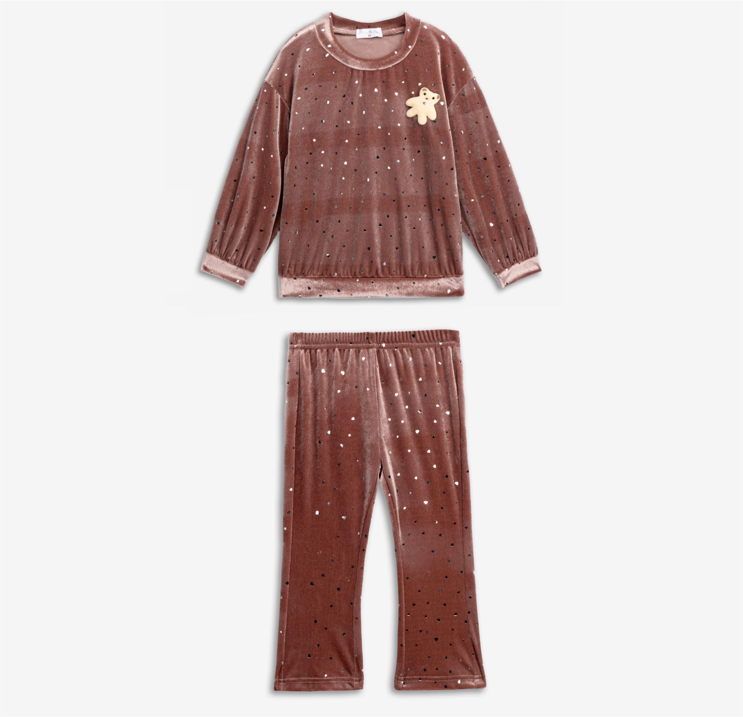 Φόρμα βελουτέ για κορίτσι 2-6 ετών σε χρώμα σκούρο ροζ/ σκούρο ροζ με τύπωμα καρδιές και λεπτομέρεια με αρκουδάκι