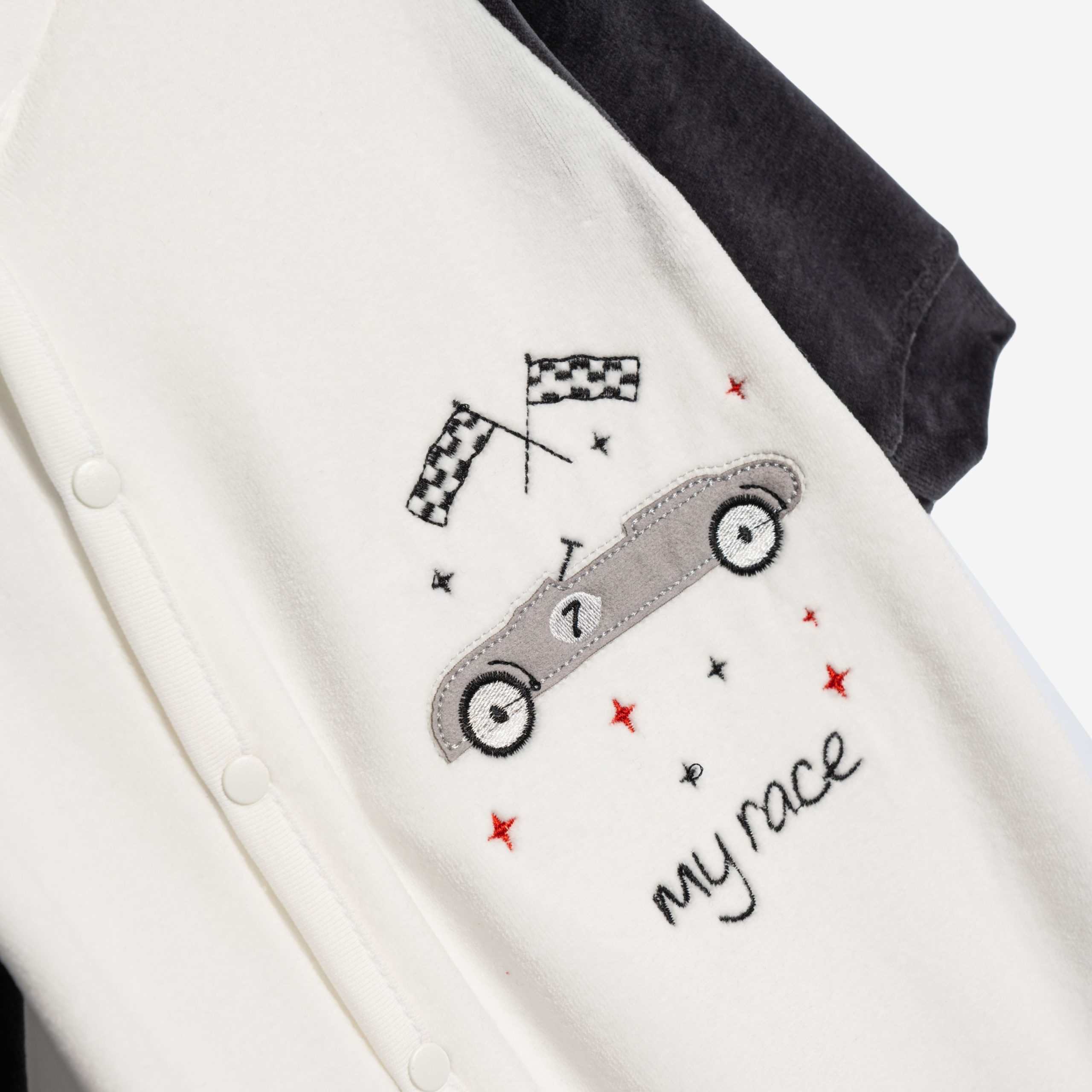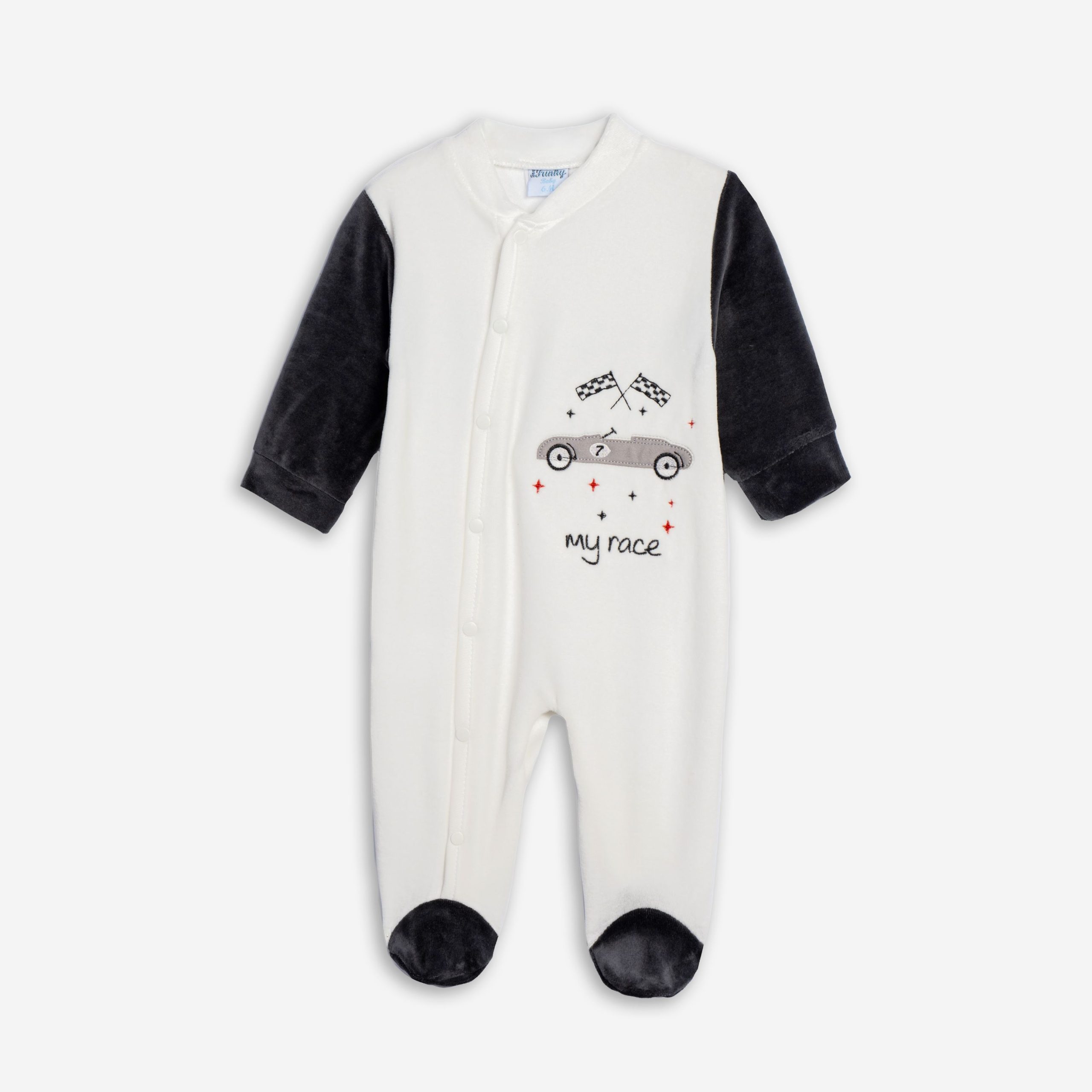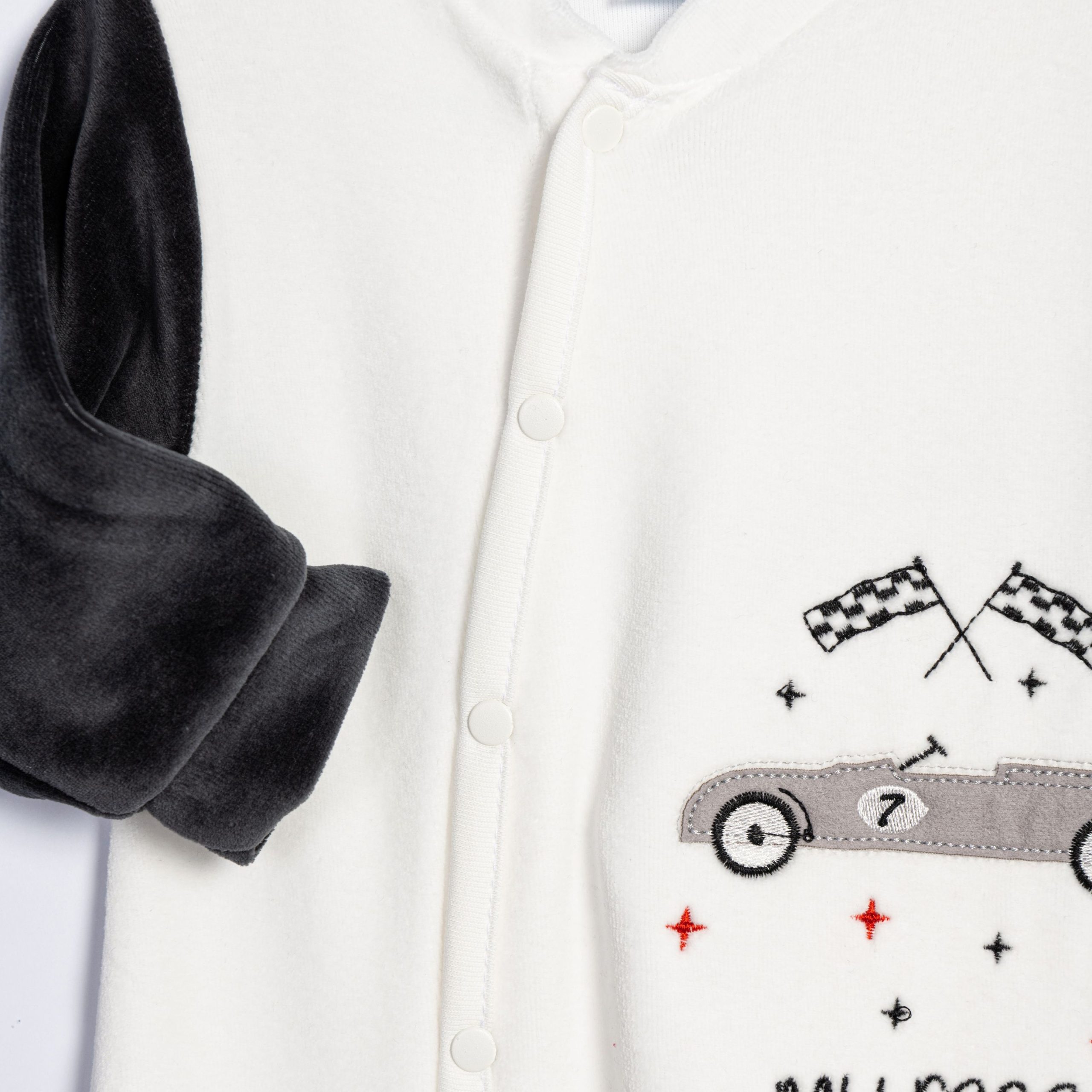 Φορμάκι μακρυμάνικο βελουτέ με τύπωμα σε χρώμα τύπος βρεφανάπτυξη για 0-24 μηνών αγόρι