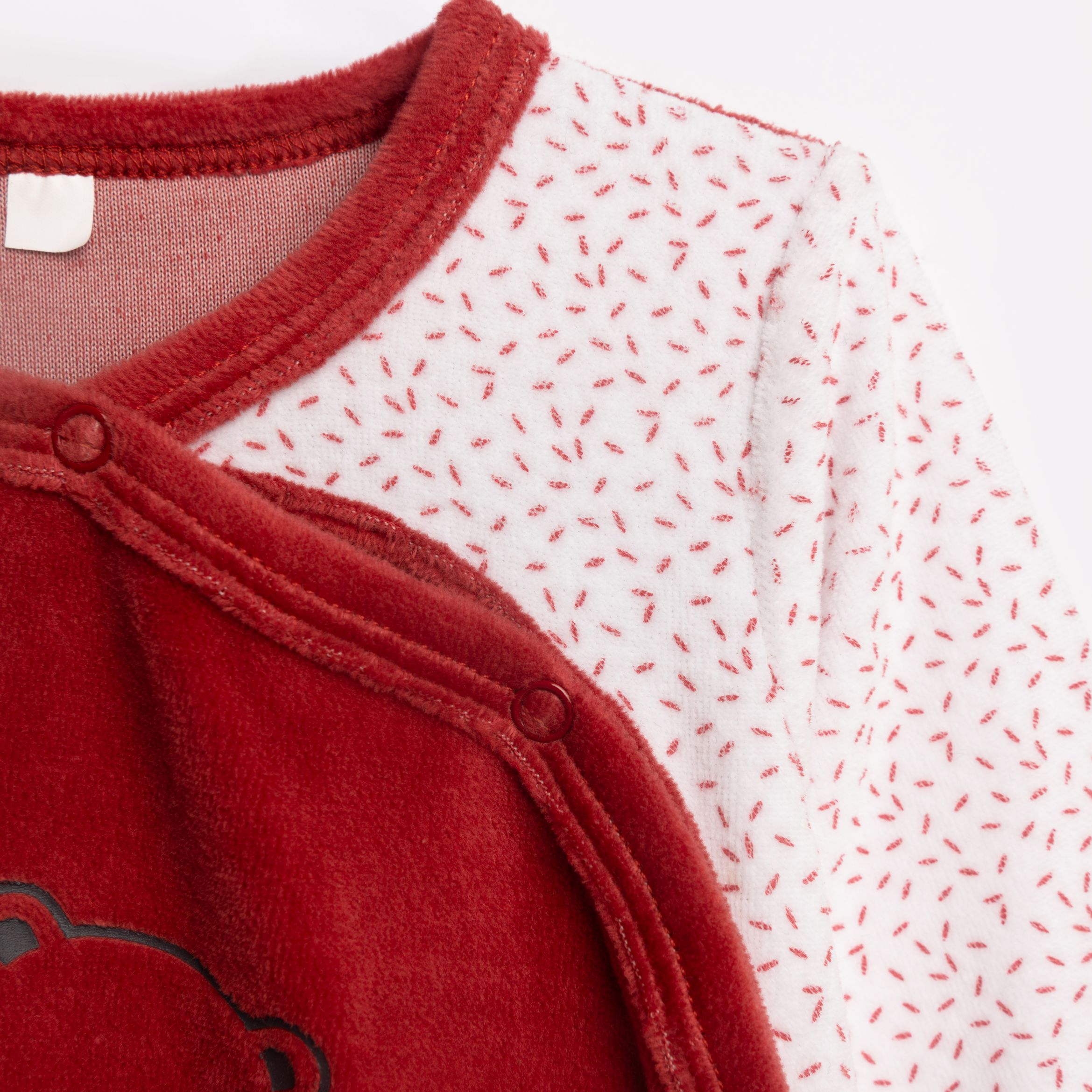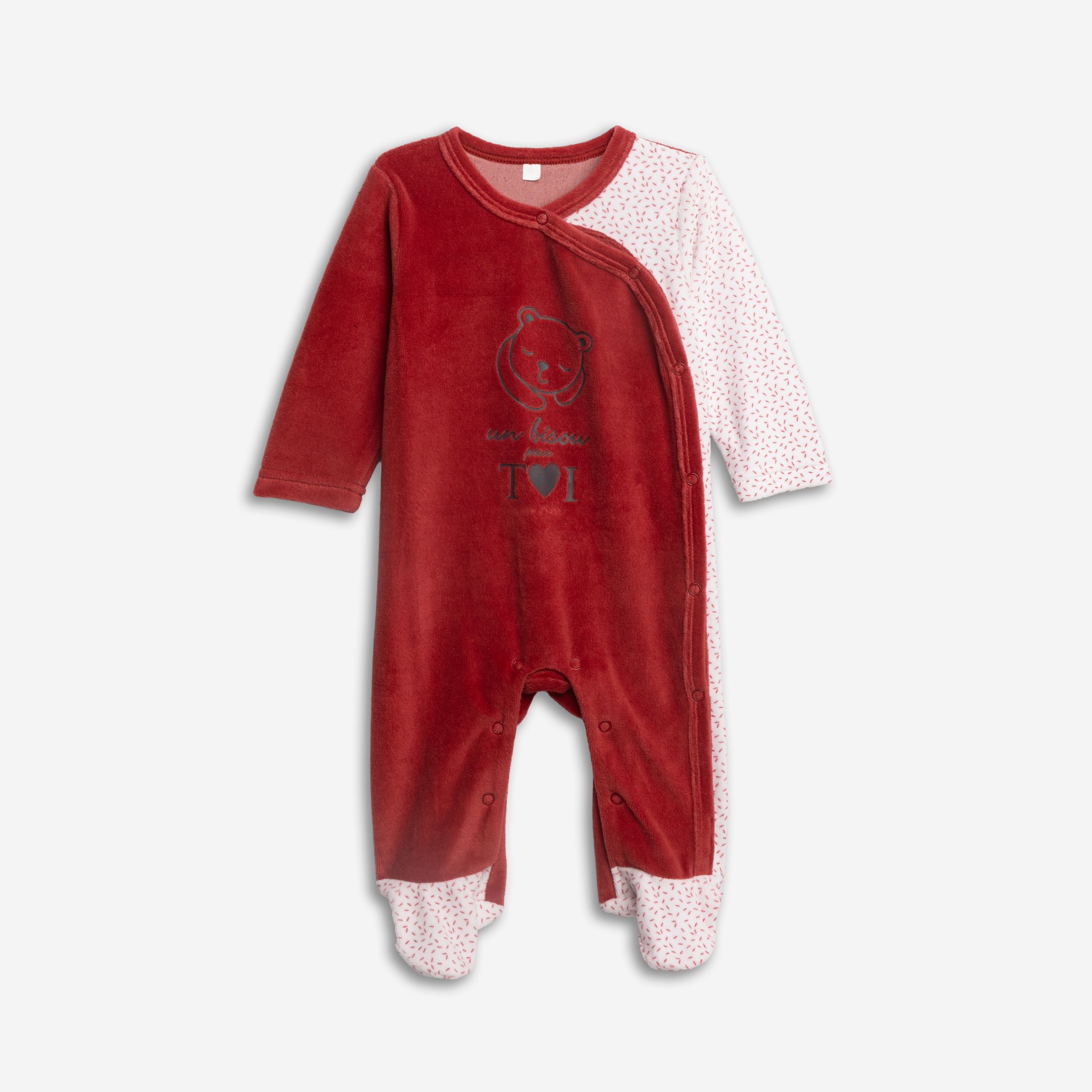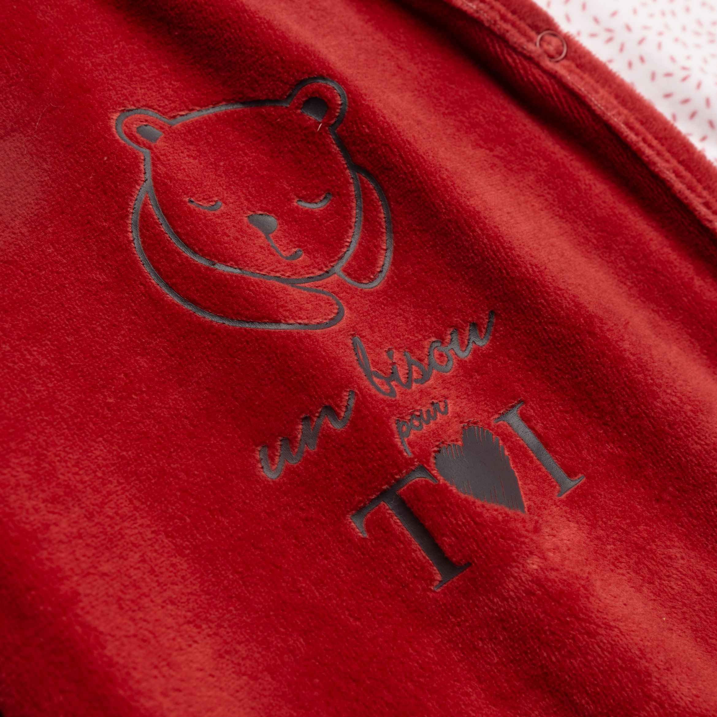 Φορμάκι μακρυμάνικο βελουτέ με τύπωμα αρκουδάκι σε χρώμα κεραμμυδί βρεφανάπτυξη για 1-9 μηνών αγόρι
