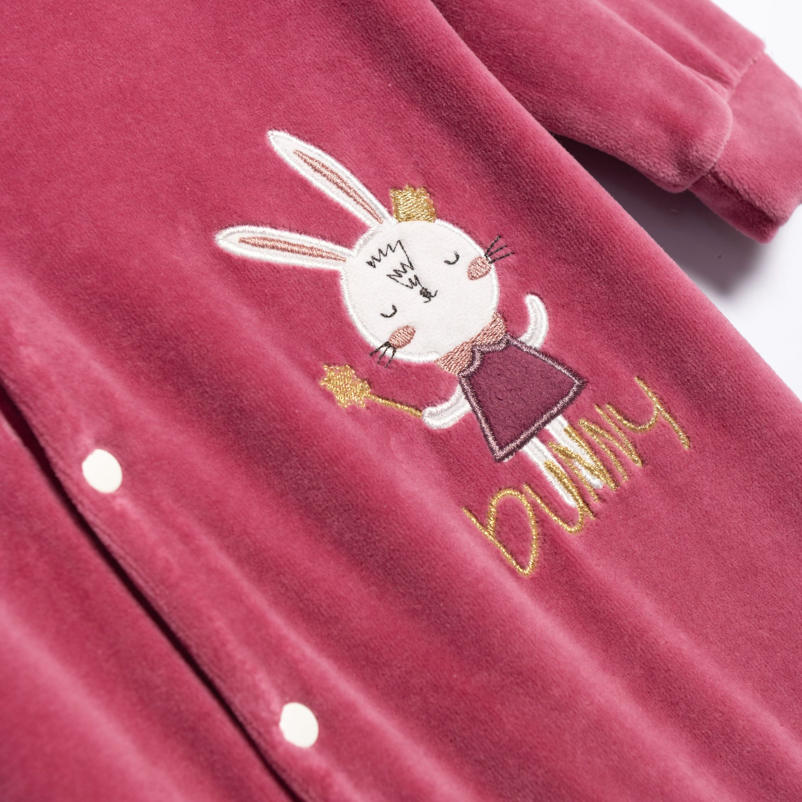 Φορμάκι μακρυμάνικο βελουτέ με τύπωμα λαγουδάκι σε χρώμα καμέλια βρεφανάπτυξη για 0-24 μηνών κορίτσι