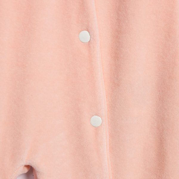 Φορμάκι μακρυμάνικο βελουτέ με τύπωμα ελεφαντάκι σε χρώμα ροζ-σομόν βρεφανάπτυξη για 0-24 μηνών κορίτσι