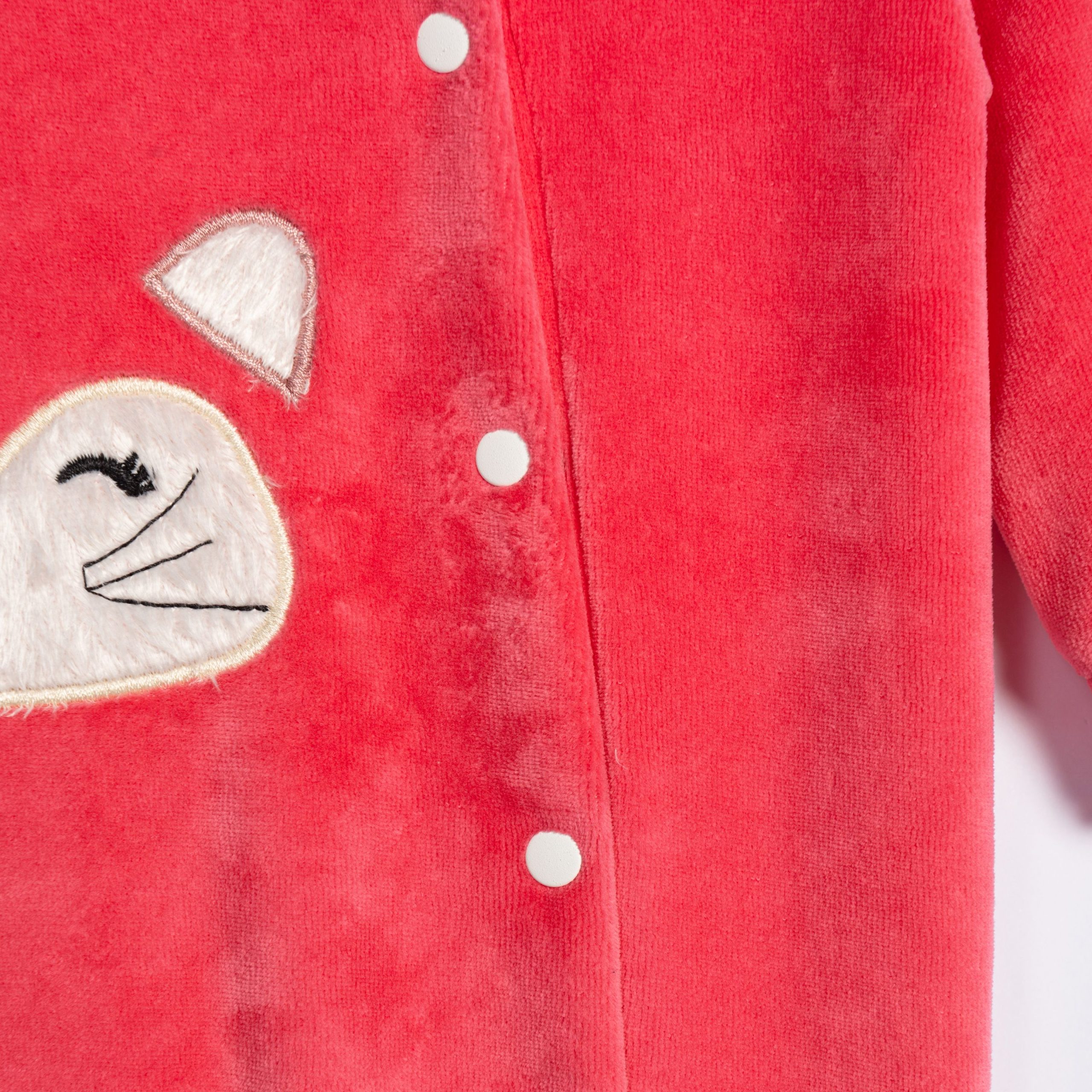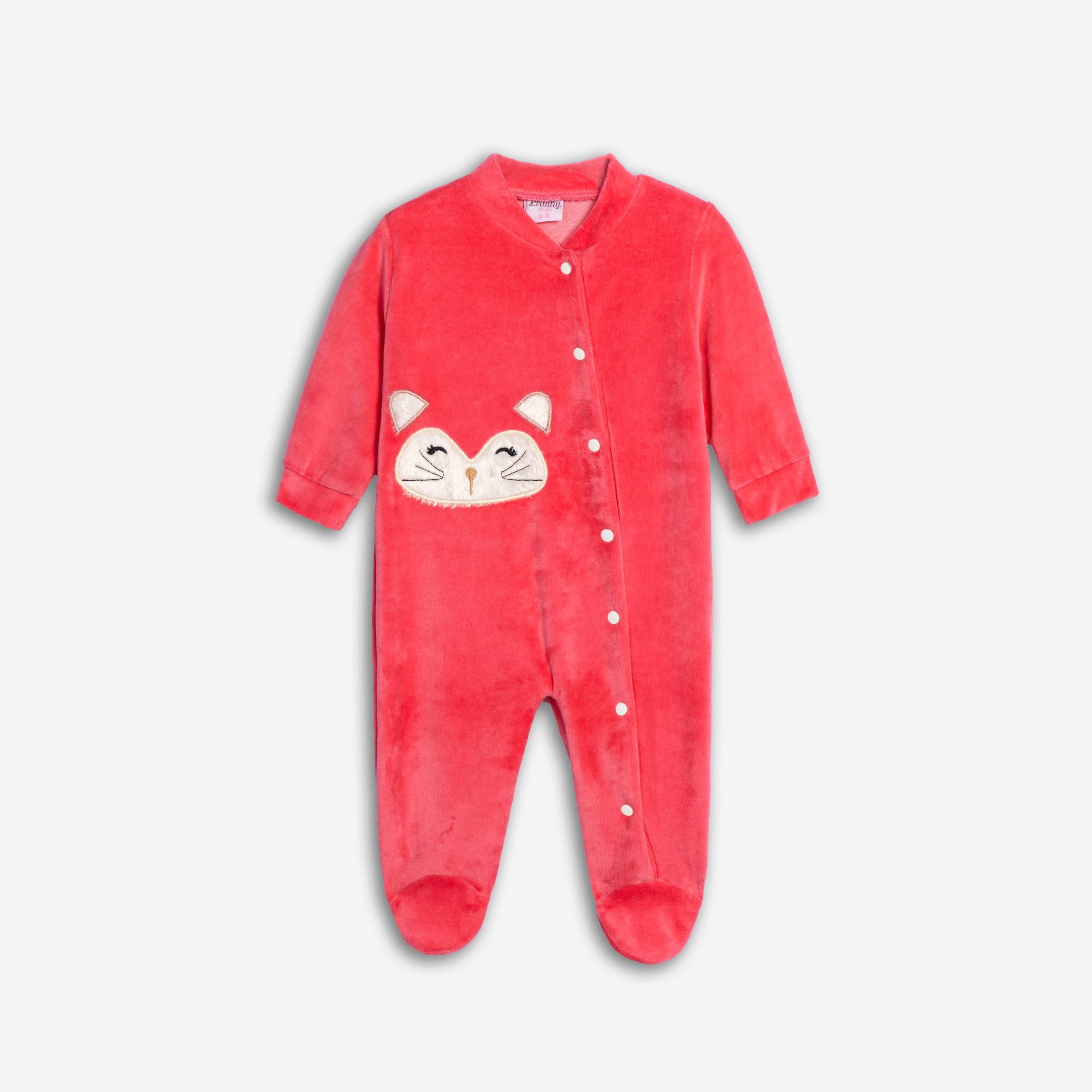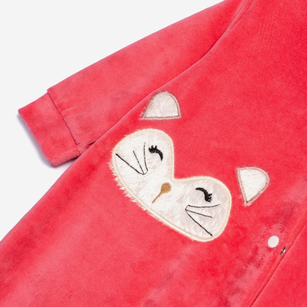 Φορμάκι μακρυμάνικο βελουτέ με τύπωμα γατάκι σε χρώμα έντονο ροζ βρεφανάπτυξη για 0-24 μηνών κορίτσι