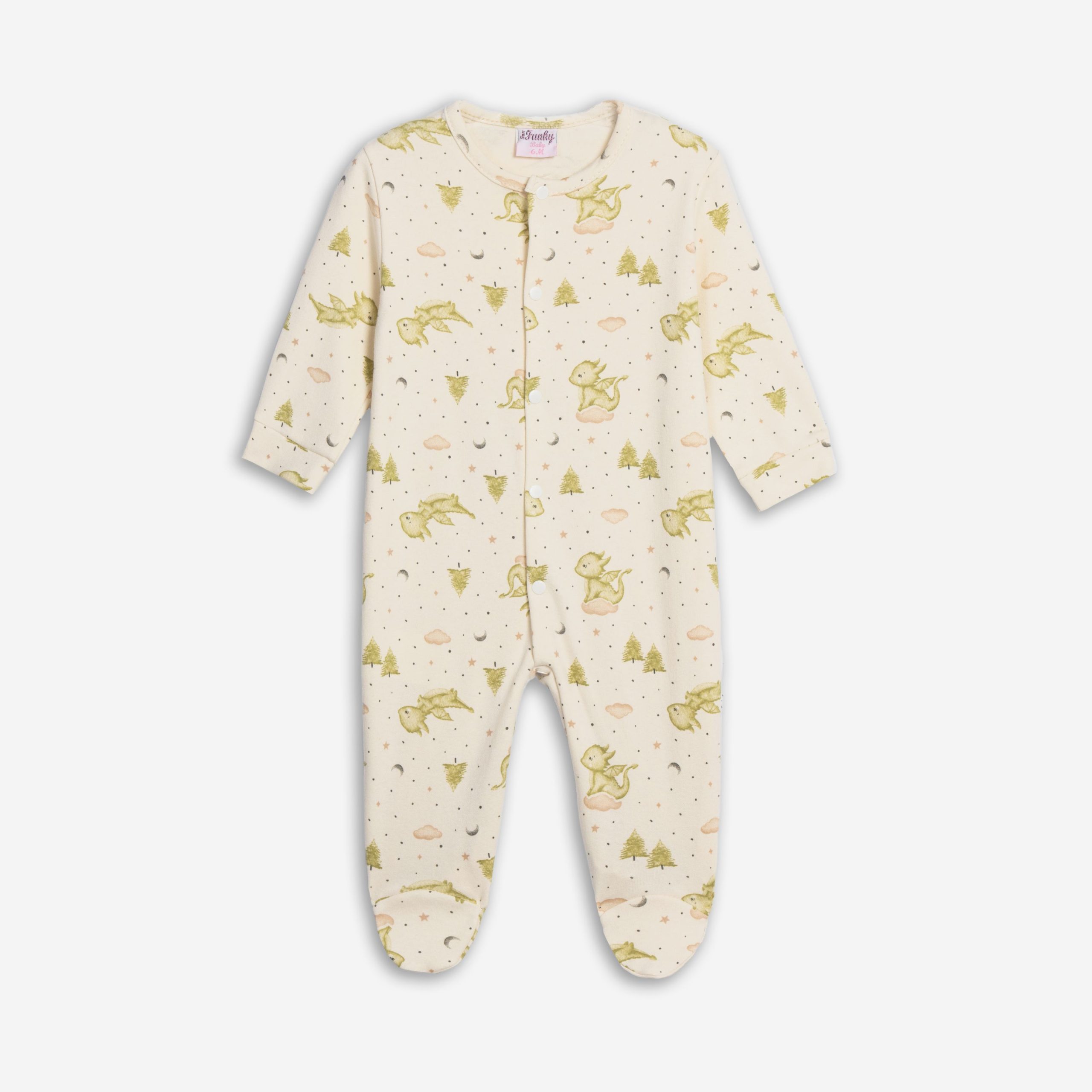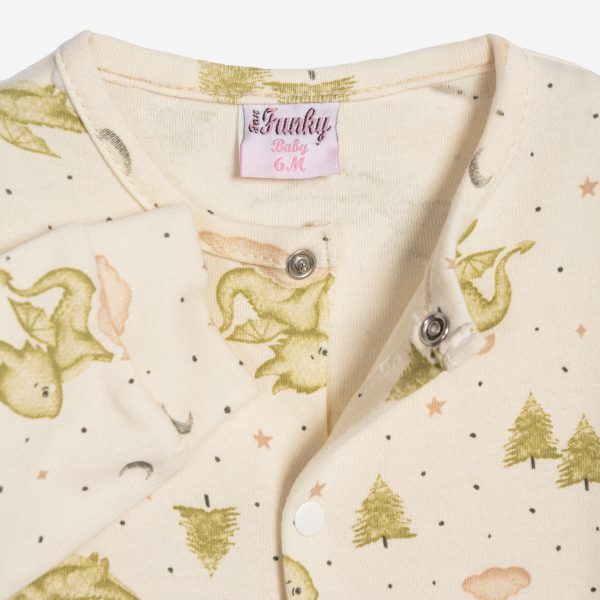 Φορμάκι μακρυμάνικο με τύπωμα σε χρώμα εκρού-πράσινο allover βρεφανάπτυξη για 0-24 μηνών αγόρι