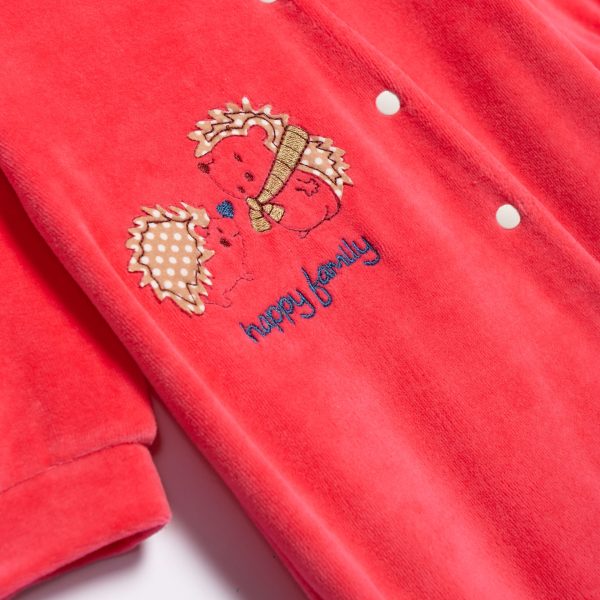 Φορμάκι μακρυμάνικο βελουτέ με τύπωμα σε χρώμα έντονο ροζ βρεφανάπτυξη για 0-24 μηνών κορίτσι