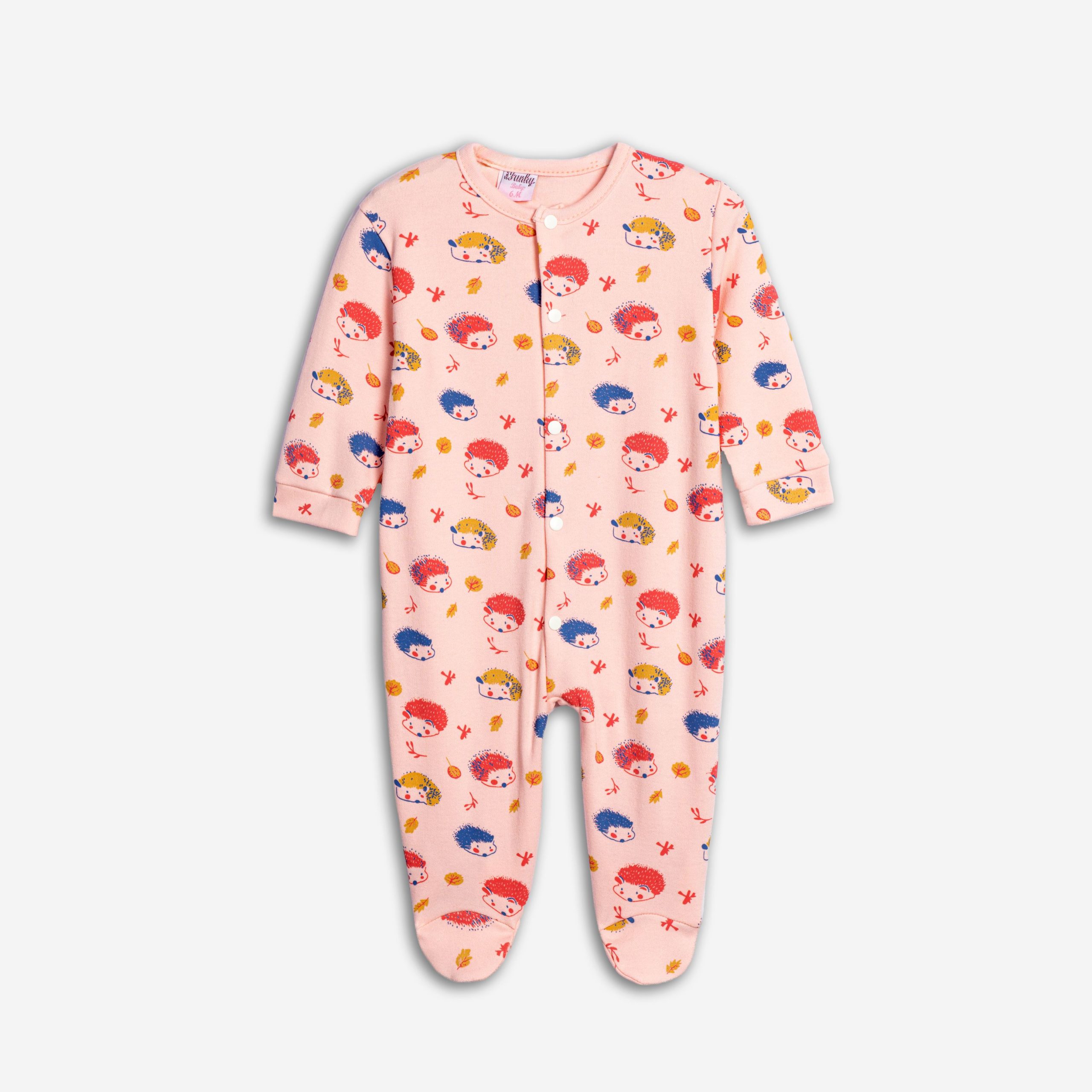 Φορμάκι μακρυμάνικο ριπ με τύπωμα allover σε χρώμα πούδρα allover βρεφανάπτυξη για 0-24 μηνών κορίτσι