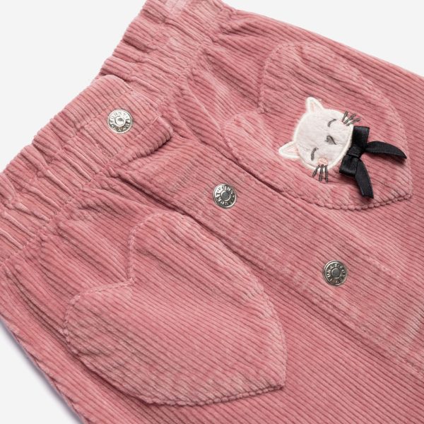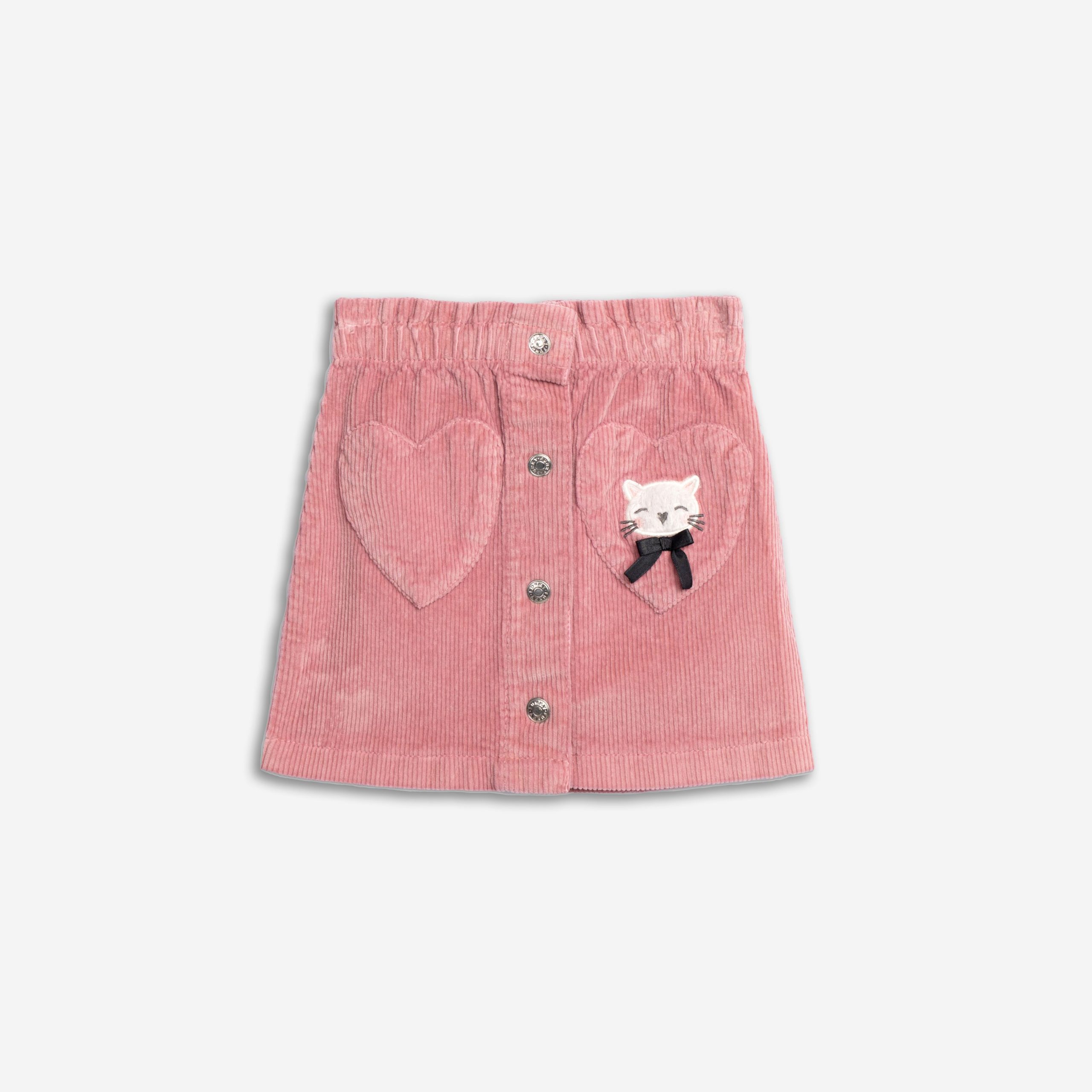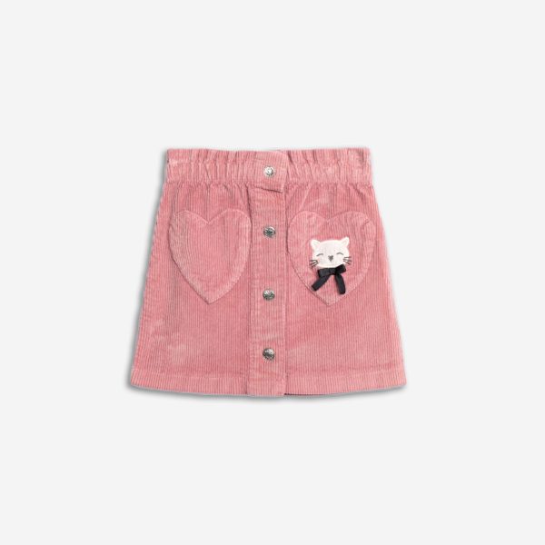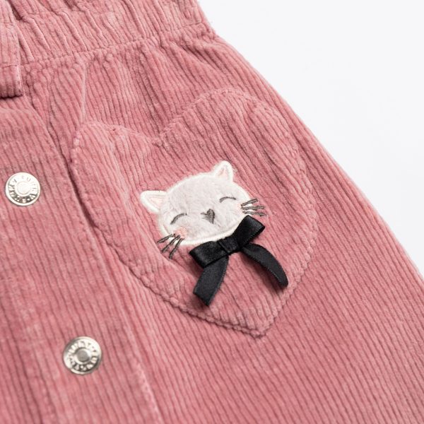 Φούτσα κορλέ λύκρα για κορίτσι 2-6 ετών σε χρώμα coral blush με τσέπες σε σχήμα καρδιάς και λεπτομέρεια με γατούλα