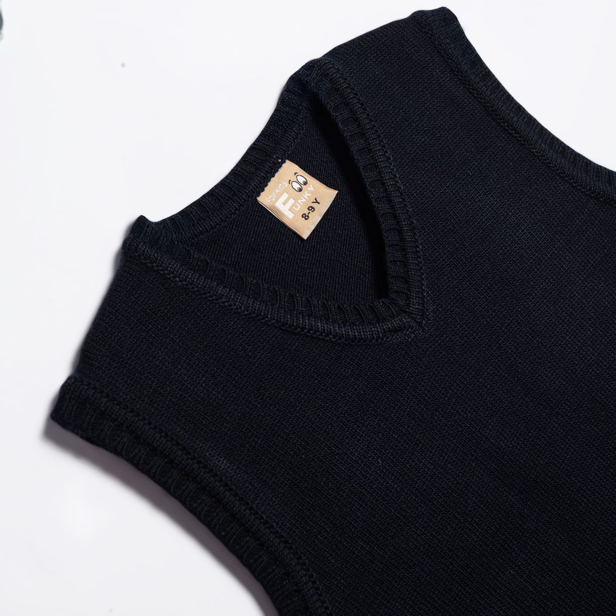 Πλεκτό γιλέκο αμάνικο παρελάσης σε χρώμα μπλε για 6-16 χρονών αγόρι