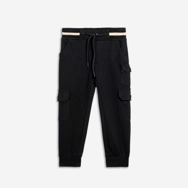 Παντελόνι πικέ κάργκο για αγόρι 2-6 ετών σε χρώμα μαύρο-εκρού